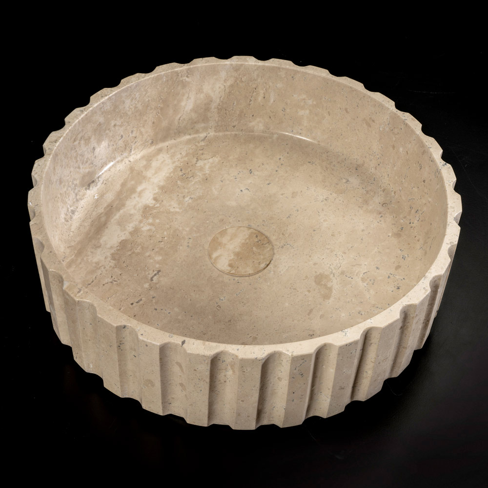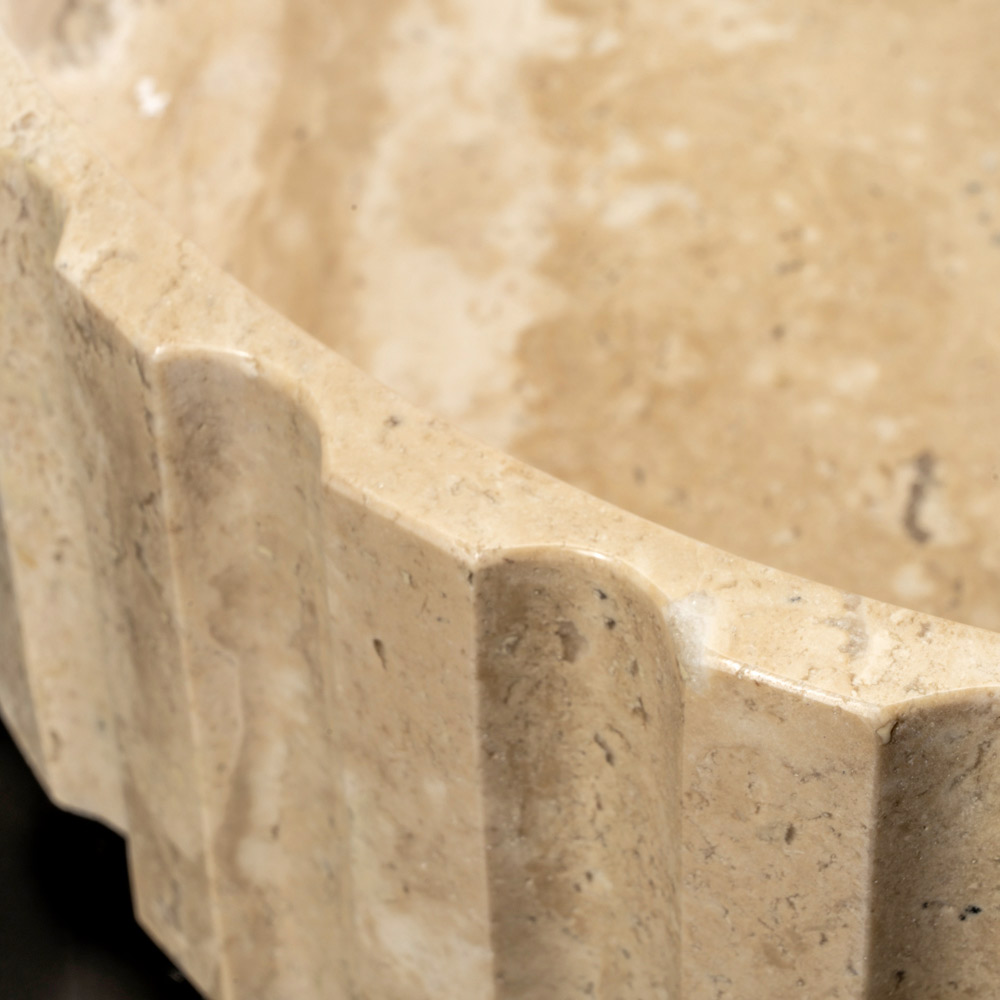 Das Aufsatzwaschbecken aus Travertin vereint Handwerkskunst und eine raffinierte Luxusästhetik. Jedes aus einem einzigen Block Travertinmarmor geschnitzte Stück ist dank seiner charakteristischen Maserungen und Farbvariationen, die es exklusiv machen, einzigartig . Der Click-Clack-Ablaufgarnitur aus dem gleichen Marmor rundet nicht nur das Design ab, sondern sorgt auch für einwandfreie Funktionalität. Dieses Waschbecken ist eine elegante Wahl für alle, die ein wertvolles Möbelstück suchen, das ein Badezimmer in einen Luxusraum verwandeln kann.