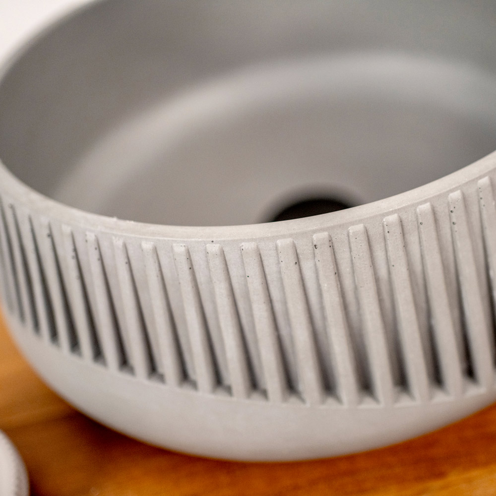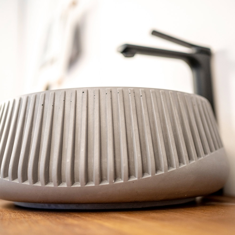 Dieses Aufsatzwaschbecken , perfekt für Liebhaber des Urban Cottage- oder Industrial-Stils, ist Skulptur und Funktion in einem einzigen Objekt. Sein Wesen kommt durch die äußeren Mikroporen und die authentischen Schattierungen des verwendeten Zements zum Ausdruck. Die äußere Verarbeitung mit präzisen Gravuren sorgt für einen materiellen Touch. Dieses in zwei Ausführungen erhältliche Waschbecken ist ein Stil-Statement für Mutige, die auffallen möchten.