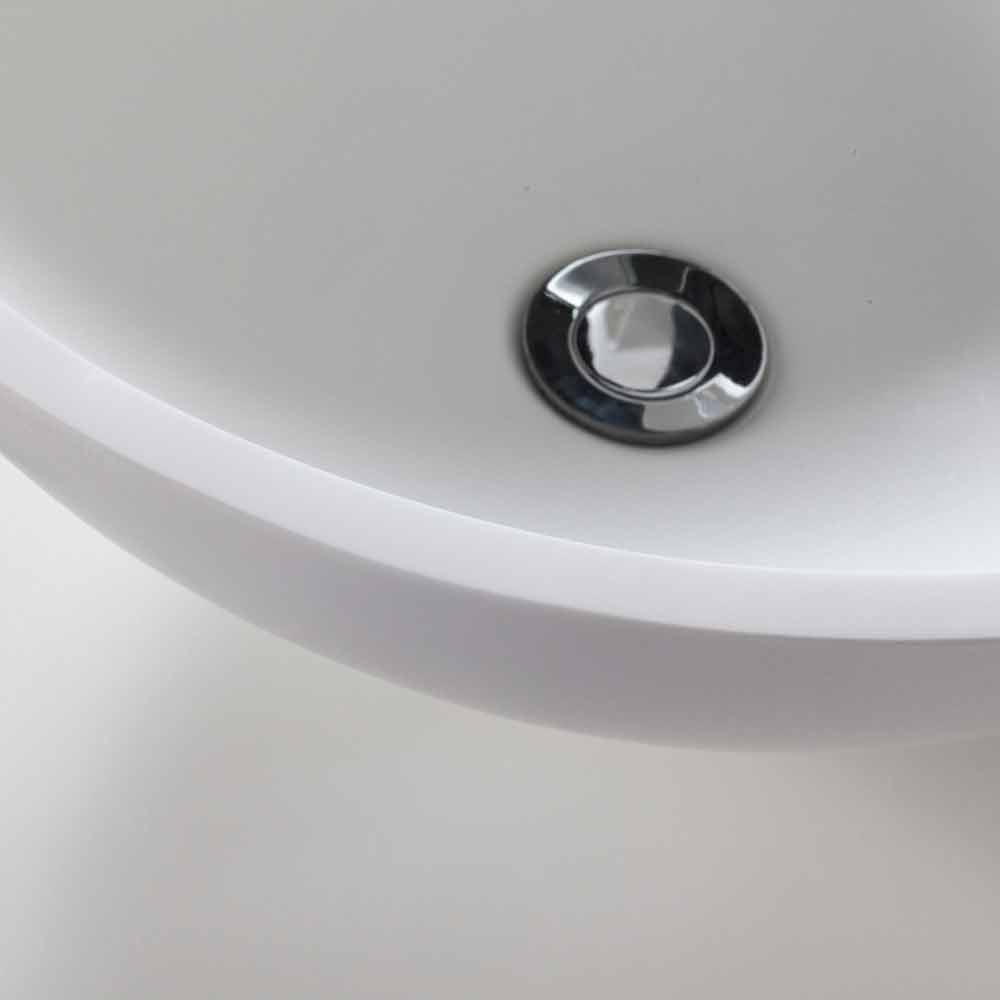Rundes Aufsatzwaschbecken aus weißem Harz.