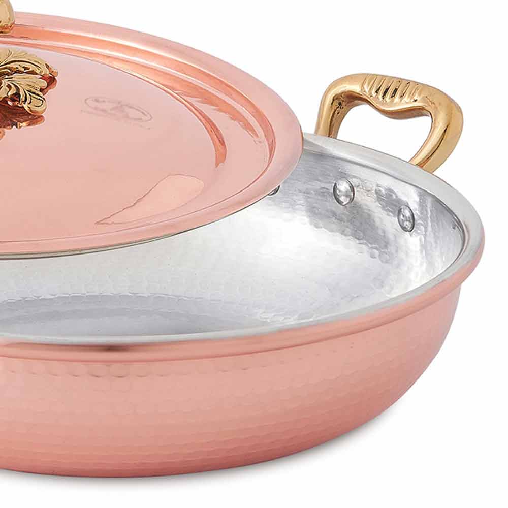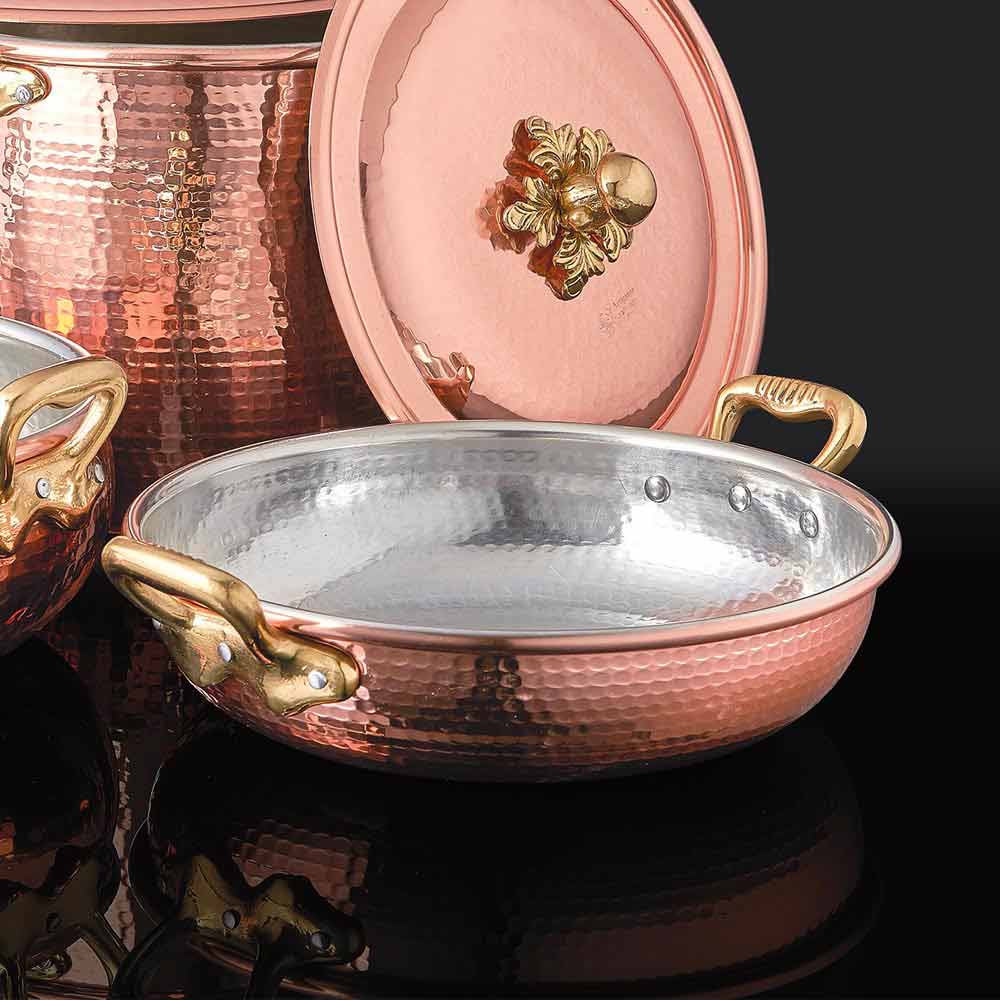 Runde Pfanne aus verzinntem und handgehämmertem Kupfer mit Deckel, made in Italy Design.
