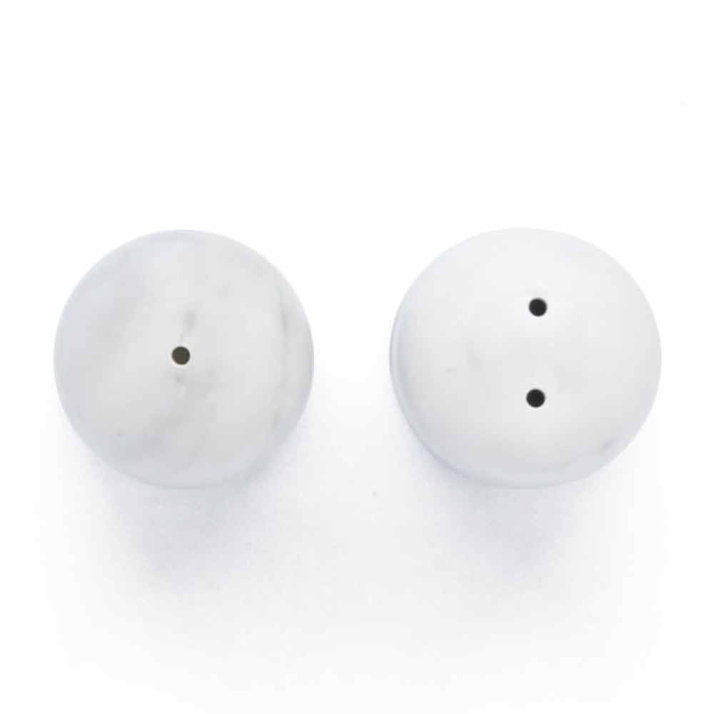 Küchenbehälter für Salz und Pfeffer aus weißem Carrara-Marmor und schwarzem Marquinia Made in Italy.