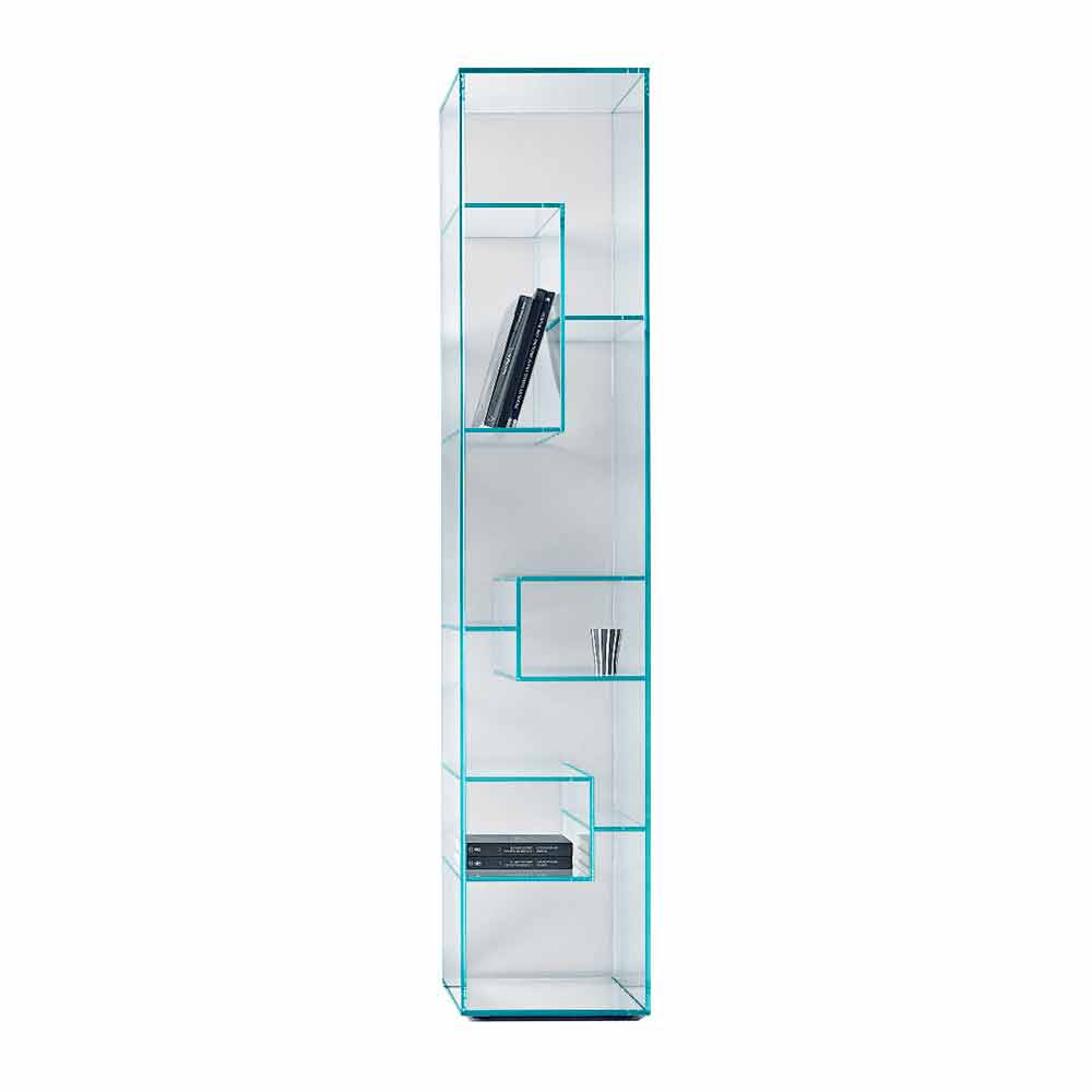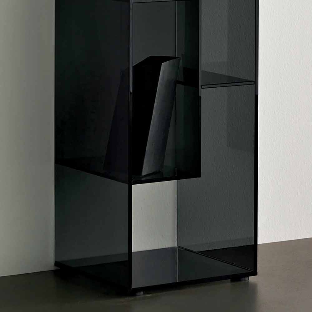 Dieses Vitrinen-Bücherregal zeichnet sich durch sein entschlossenes und elegantes Design aus, das vollständig aus extra klarem oder rauchfarbenem Glas besteht.
