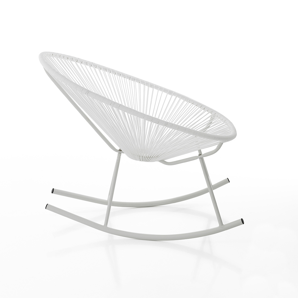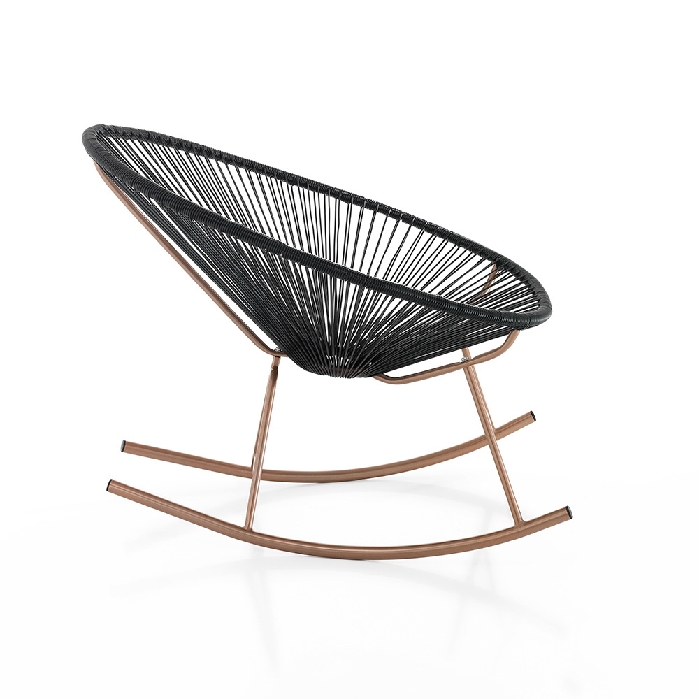 Schaukelsessel mit Gestell aus lackiertem Metall und Rückenlehne aus Polyrattan-Kordel, komplett . Dieses Möbel ist perfekt, um sich einzigartige Momente der Ruhe und Entspannung zu gönnen und sich von dieser fantastischen Schaukel wiegen zu lassen. Die für die Konstruktion gewählten Materialien garantieren einen bequemen und umhüllenden Sitz , aber auch Widerstandsfähigkeit und Funktionalität, um den Sessel sowohl im Innen- als auch im Außenbereich aufzustellen.