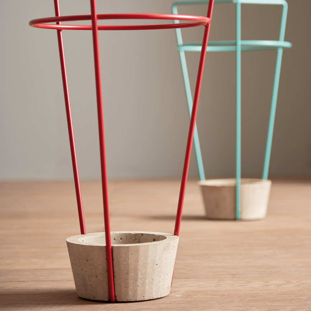Dieser Schirmständer ist mehr als nur ein Möbelstück : Er ist ein echtes Kunstwerk. Es zeichnet sich durch sein konzeptionelles Design mit einer starken und soliden Basis auf dem Boden aus, die von Hand aus Beton gefertigt wurde, und einer Metallstruktur , die in verschiedenen Farben erhältlich ist. Mit dem originalen Design-Schirmständer wird die Vereinigung von Ästhetik und Funktionalität zum Leben erweckt.