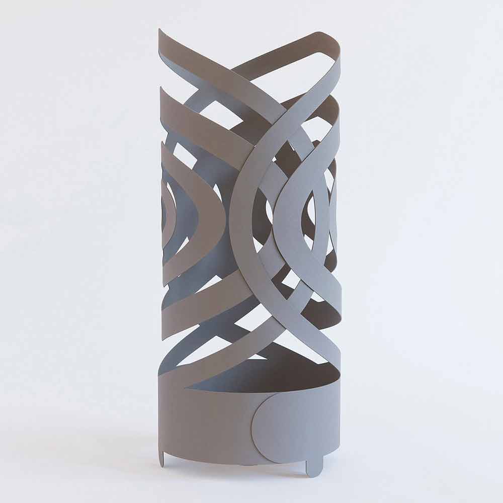 Der Schirmständer Olfeo ist durch besondere Linien gekennzeichnet, die an die Form miteinander verflochtener Bänder erinnern.