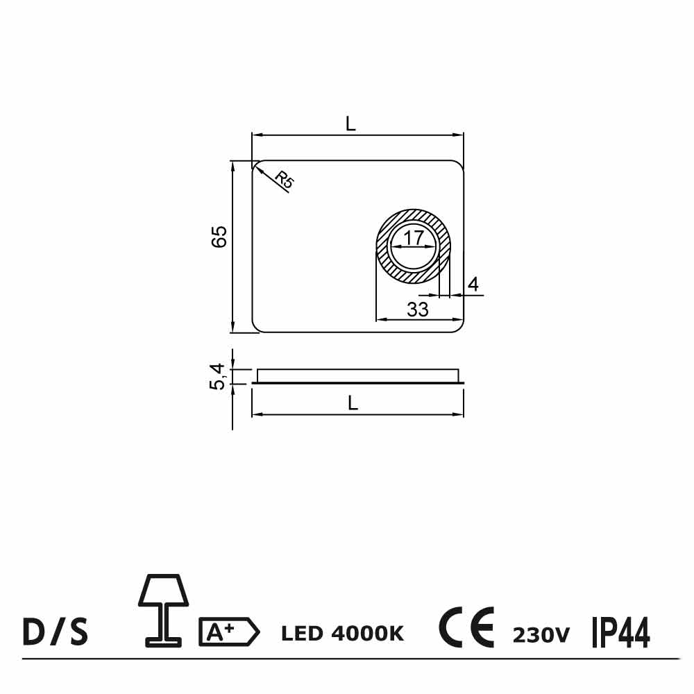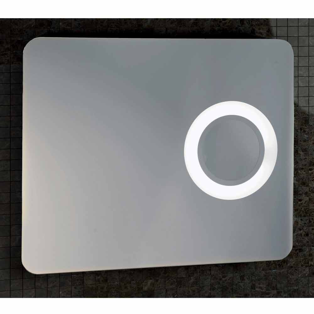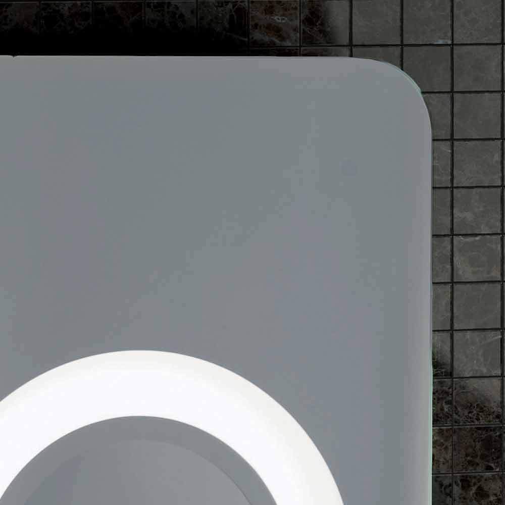 Schminkspiegel im modernen Design, LED-Beleuchtung, Maren Spiegel mit abgerundeten Ecken mit integriertem Schminkspiegel mit LED-Beleuchtung. Vergrößerter Durchmesser 170 mm.