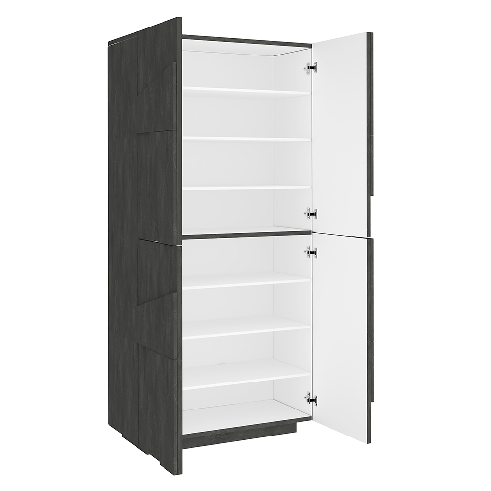Der Schuhschrank besteht aus 4 Flügeltüren , die durch die geometrische Reliefschnitzerei auf der Oberfläche besonders angefertigt wurden und 8 Behälterfächer schließen, die viel Stauraum garantieren. Es besteht aus Melamin und ist zu 100 % Made in Italy . Dieses Produkt eignet sich dank seiner schlichten und eleganten Oberflächen , die der Umgebung eine einzigartige und unvergessliche Note verleihen, zur Vervollständigung der Einrichtung jedes Wohnbereichs. Das verwendete Material garantiert Qualität und Beständigkeit auch im Laufe der Zeit.