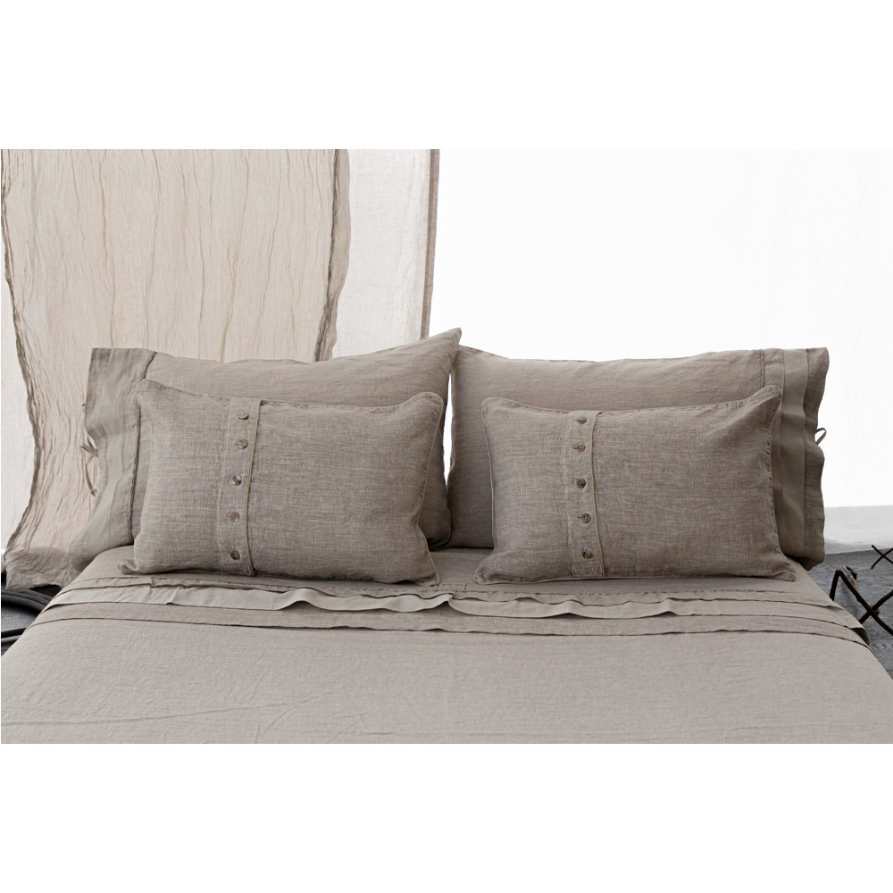 Rechteckiger Leinen-Kissenbezug mit Spitze, Knöpfen und elegantem Rand made in Italy.