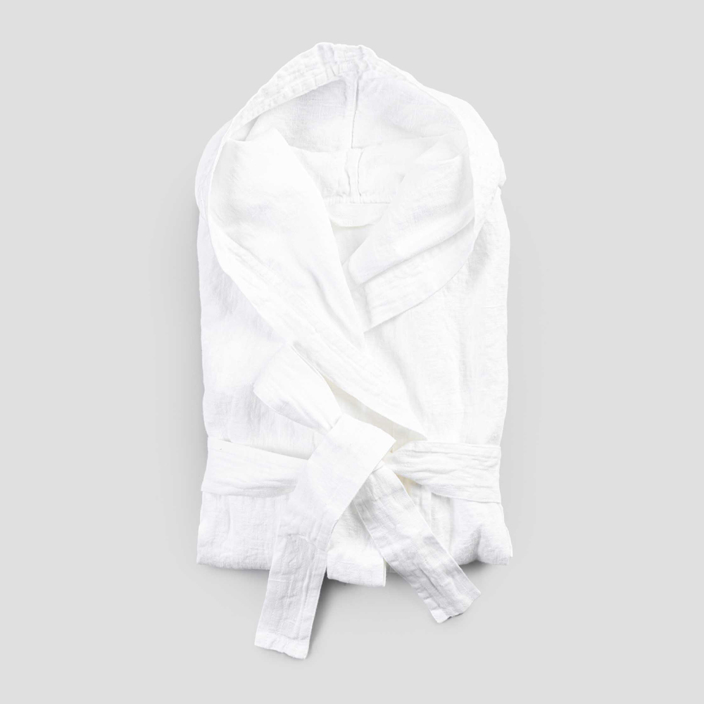 Schwerer weißer Bademantel aus Leinen mit italienischer Luxushaube - Palace