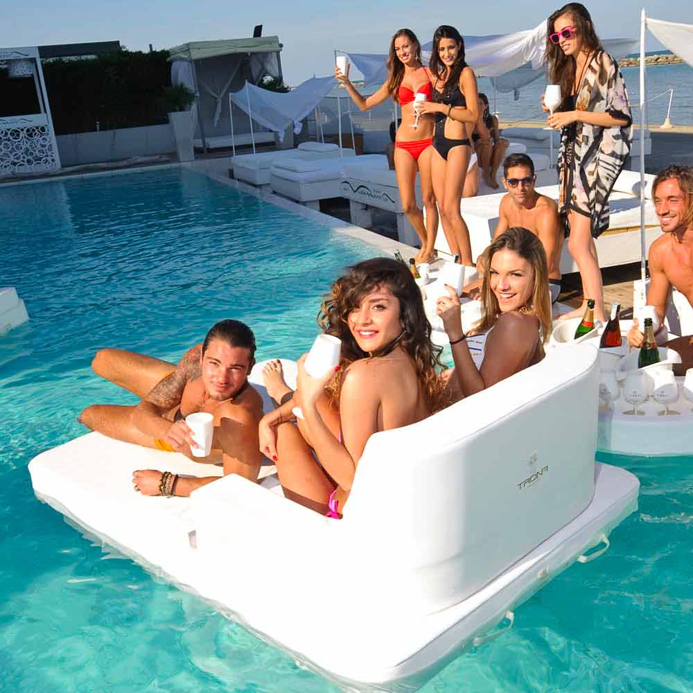 Trona Magnum Luxury ist ein schwimmendes Loungesofa für Swimmingpool. Einzigartiges Design mit einer hervorragenden Qualität - made in Italy Produkt. Trona besteht aus hochwertigen Kunstleder, welches auch für Yacht und im Bootszubehör verwendet wird. Kunstleder eignet sich hervorragend für den Outdoorbereich, zudem ist es Eco - friendly, wasserdicht, feuerfest und Farbschutz imrägniert. Zusätzliche Standard Zertikate sind enthalten. Die Polsterung besteht aus Hartschaum EPS expandiertes Polystyrol. Trona ist weiterhin mit seitlichen Halterungen ausgestattet.