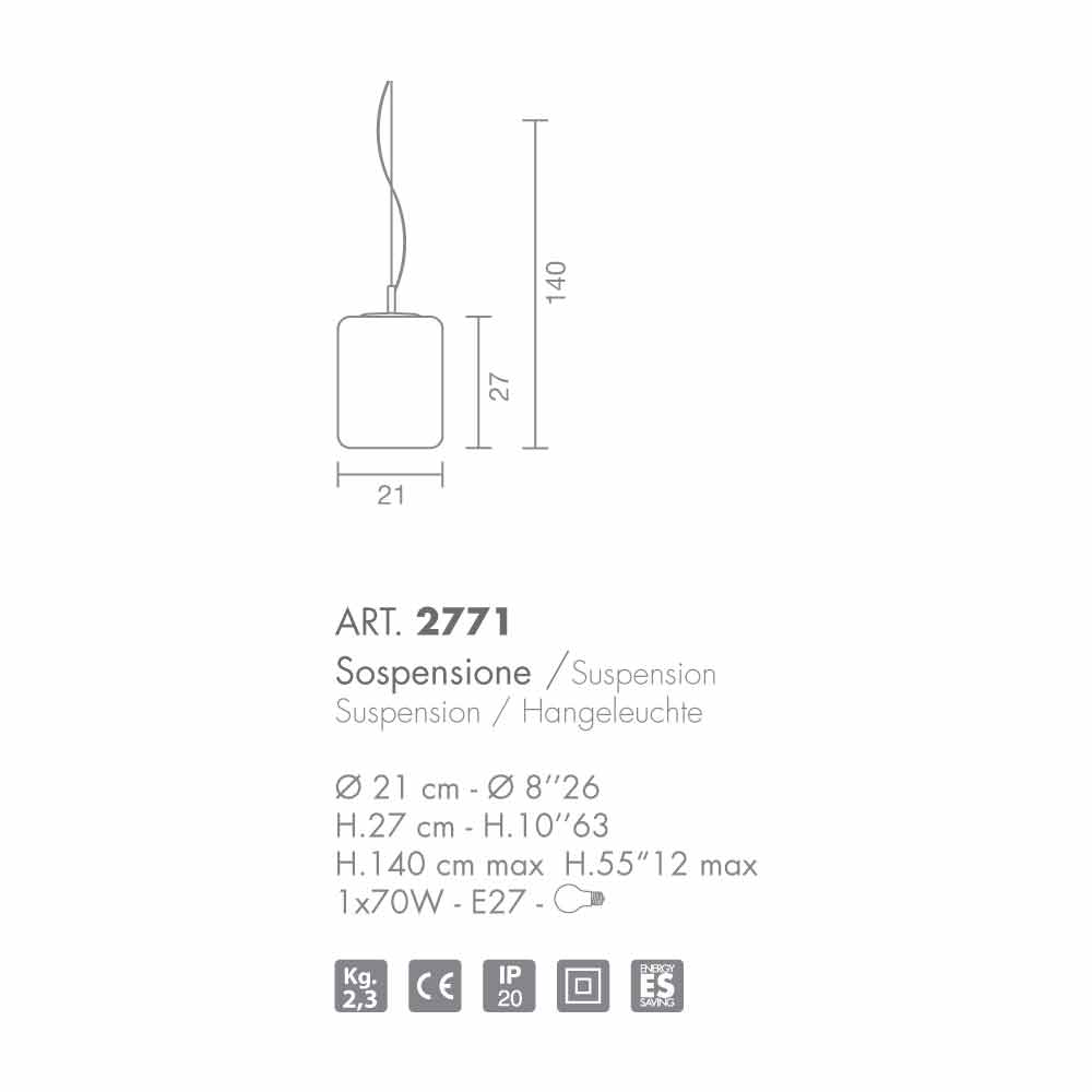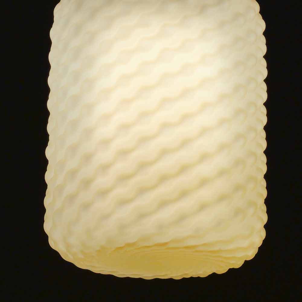 ist eine reichhaltige Kollektion von Lampen aus mundgeblasenem Glas mit einer speziellen alveolaren Prägung, die das Glas selbst verschönert. Der Diffusor kann zylindrisch in zwei Größen und kugelförmig in einem sein, außerdem ist er in drei Farben erhältlich: Satinweiß, Bernstein und Rauch; und vorbereitet für den Gebrauch von 1 70W E27 Birne.