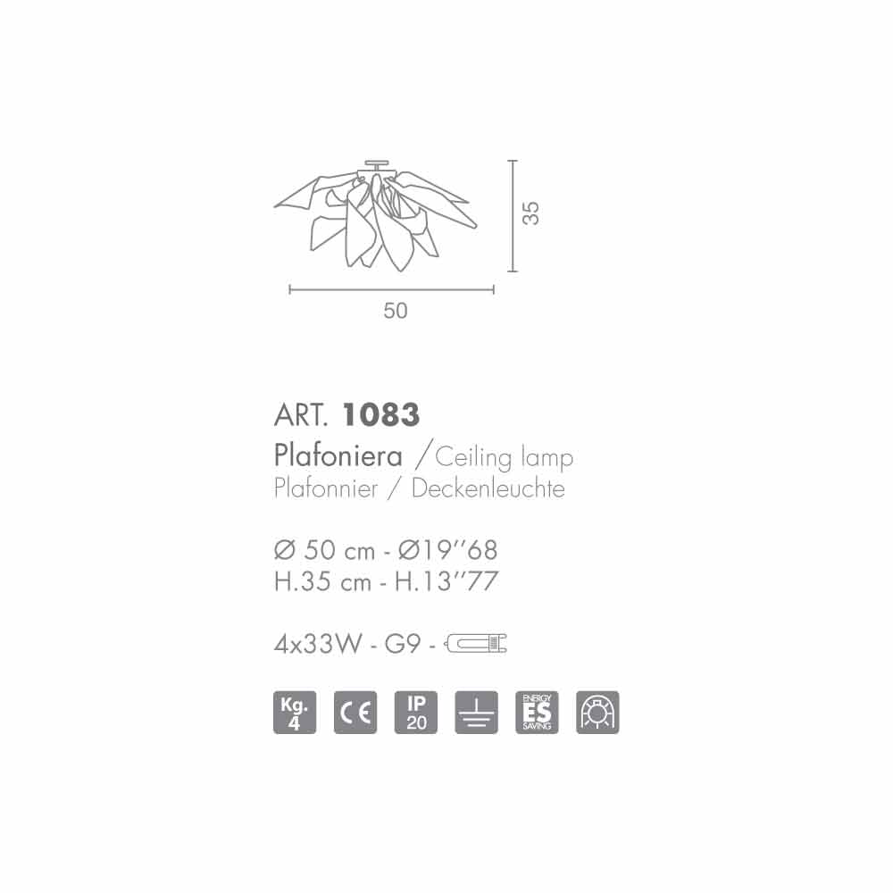 Selene Ginger Decklenampe aus Metall made in Italy Ø50 H35cm