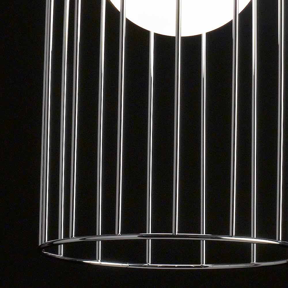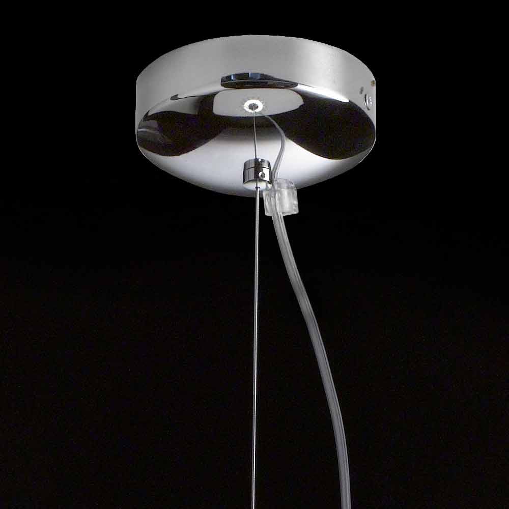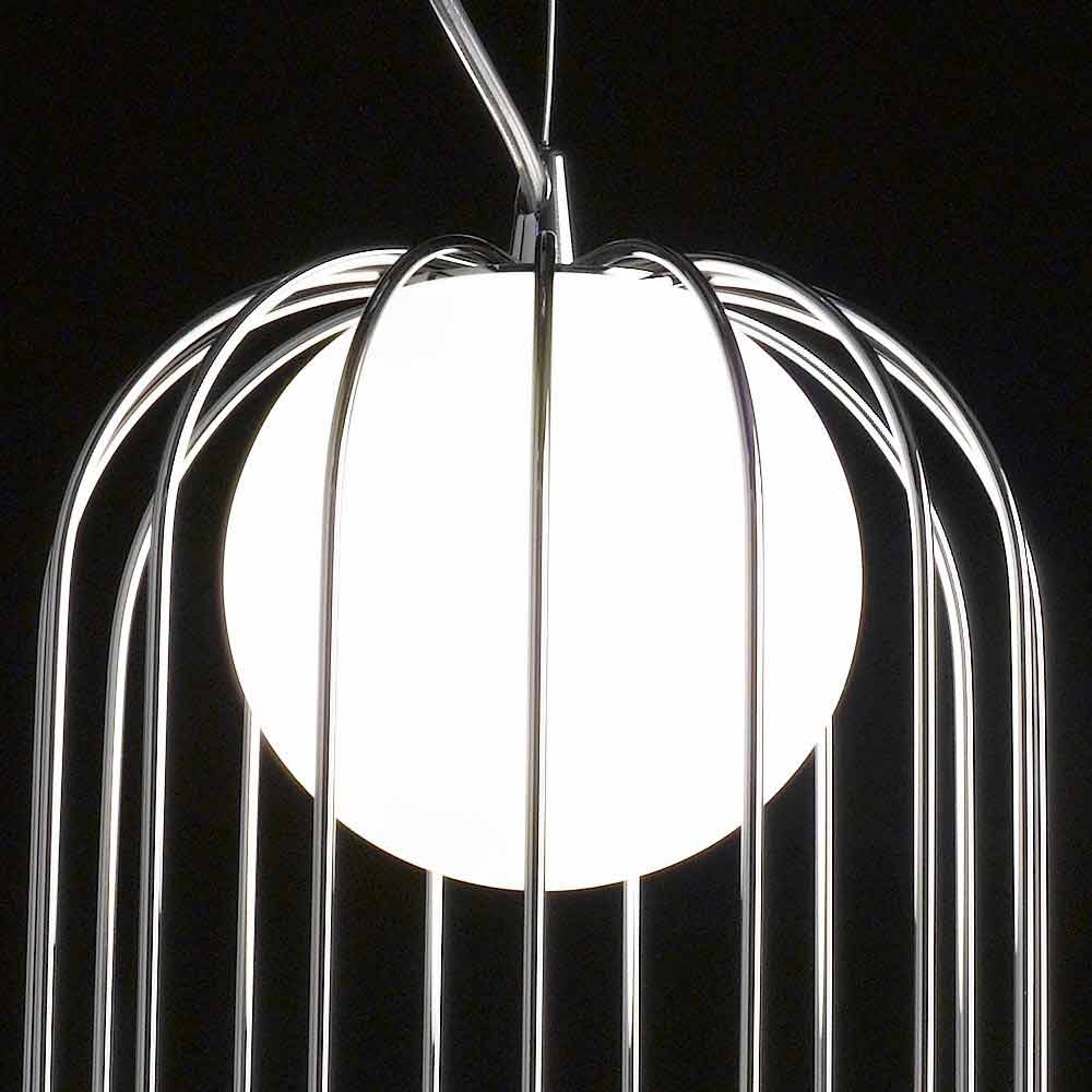 Selene Kluvì mundgeblasene Glas Pendelleuchte Ø19 H 27 / 150cm Kluvì ist eine Sammlung von drei Aufhängungen und Lampen, die eine beträchtliche Größe erreichen können, bestehend aus einem Metallkäfig und einer milchig-weißen mundgeblasenen Glaskugel. Vollenden: Chrom; vorbereitet für die Verwendung von 1 Glühbirne 33W - G9.