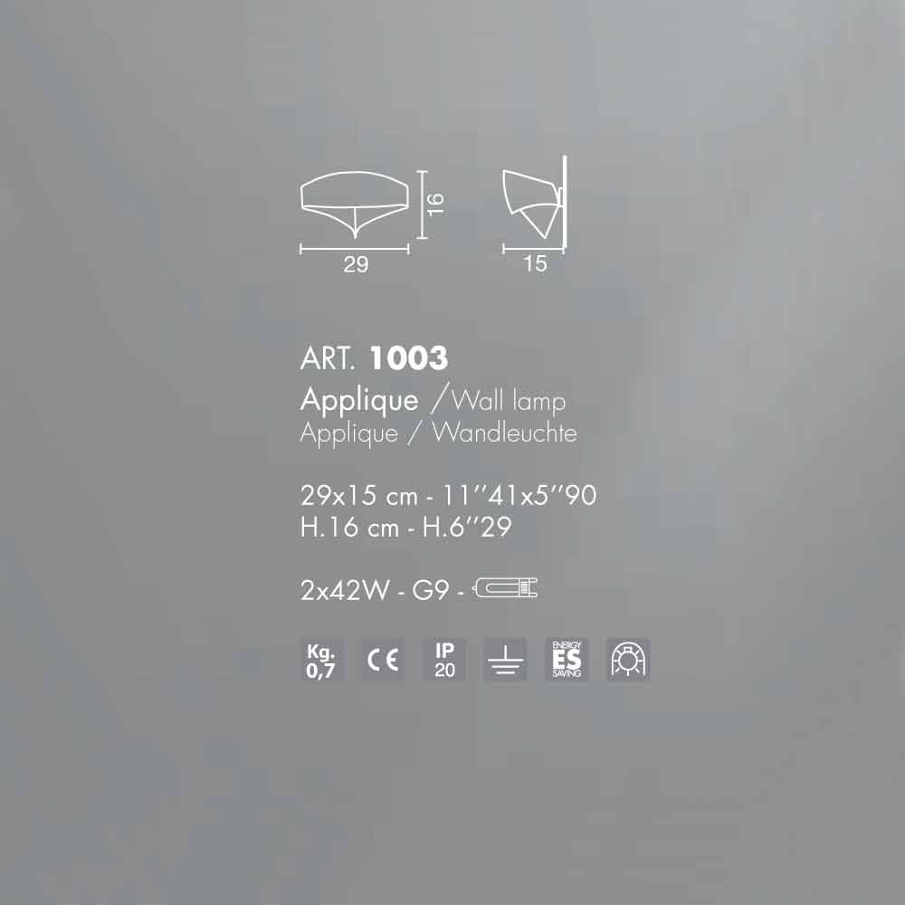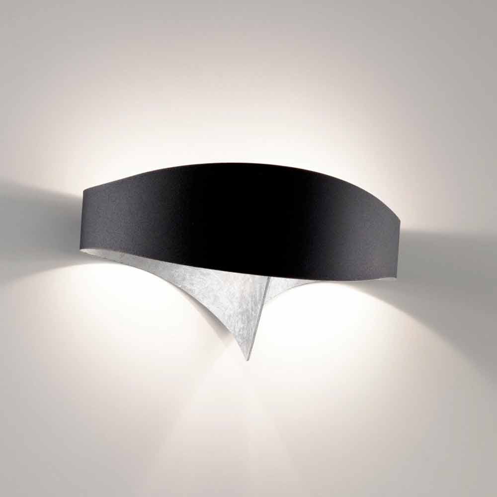 Selene Scudo zweifarbige Wandleuchte im modernen Design 29x15xH16 cm Scudo ist eine Wandleuchte, die aus einem laserförmigen Stahlband entsteht, das von Hand zu einem ungeteilten und umhüllenden Element gefaltet wird. Erhältlich in verschiedenen Ausführungen und vorbereitet für den Einsatz mit 2 G9 42 W Glühbirnen oder 1x11W LED.