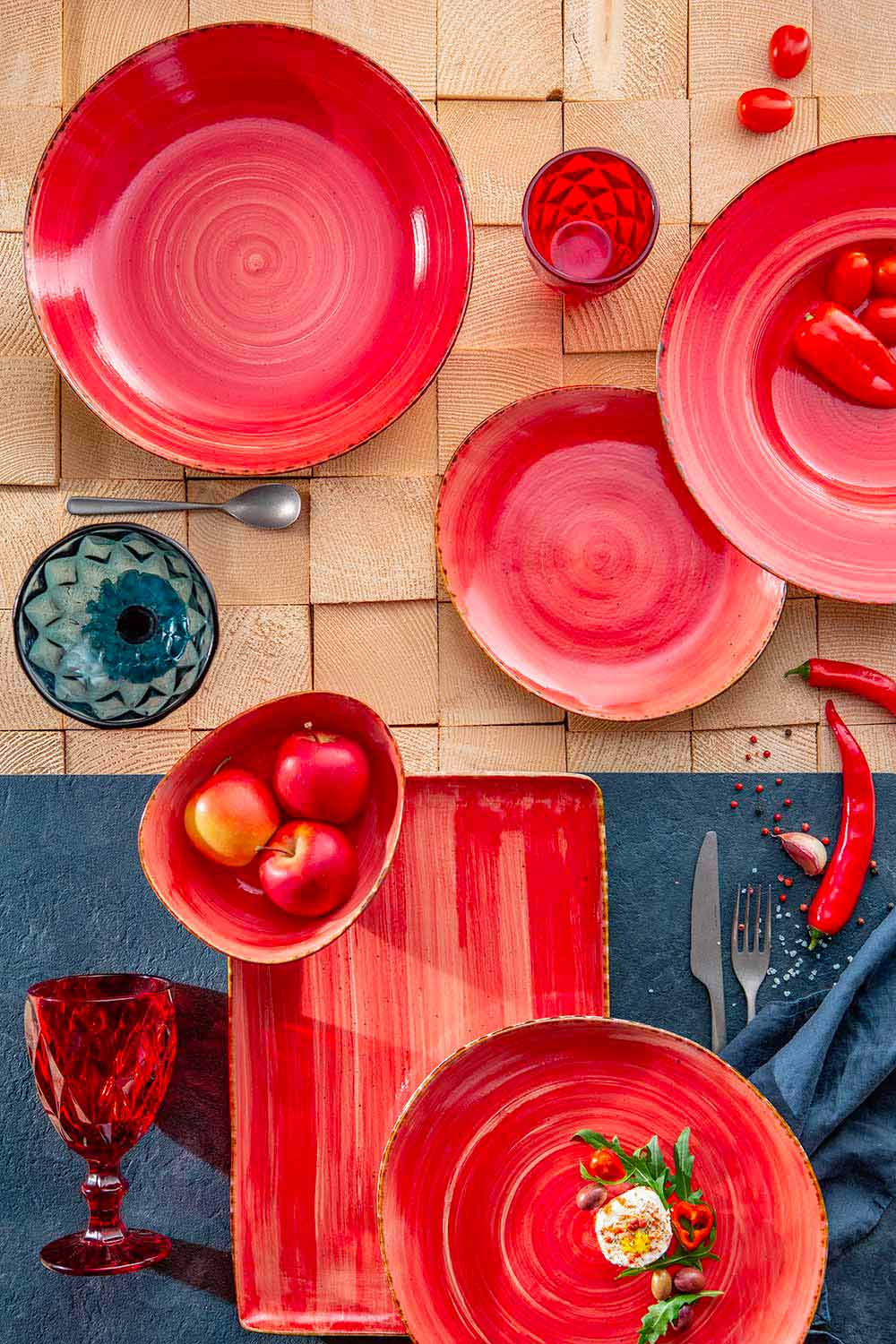 Chilirot : Eine würzige und faszinierende Farbe, die die weichen und überzeugenden Linien der Gerichte unterstreicht. Ein attraktiver und tiefer Hauch von Rot für überzeugende individuelle Akzente beim Servieren.