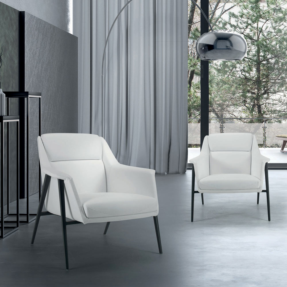 SesselHergestellt aus einer schwarzen A8- Stahlstruktur und weißem Kunstlederbezug. Dieser zu 100 % in Italien hergestellte Sessel hat eine besonders schlichte und vielseitige Form, die sich dank seines nüchternen Designs und der essentiellen Formen problemlos in jeden modernen Wohn- oder Objektbereich einfügt. Ideal für alle, die einen eleganten Einrichtungsstil lieben. Diese Einrichtungslösung verfügt außerdem über einen Bezug aus Ökoleder, einem Material, das den Komfort auch bei Berührung maximiert. Die für die Herstellung dieses Accessoires ausgewählten und verwendeten Materialien ermöglichen außerdem eine besonders einladende Sitzgelegenheit, ideal für wundervolle, gemütliche Momente.