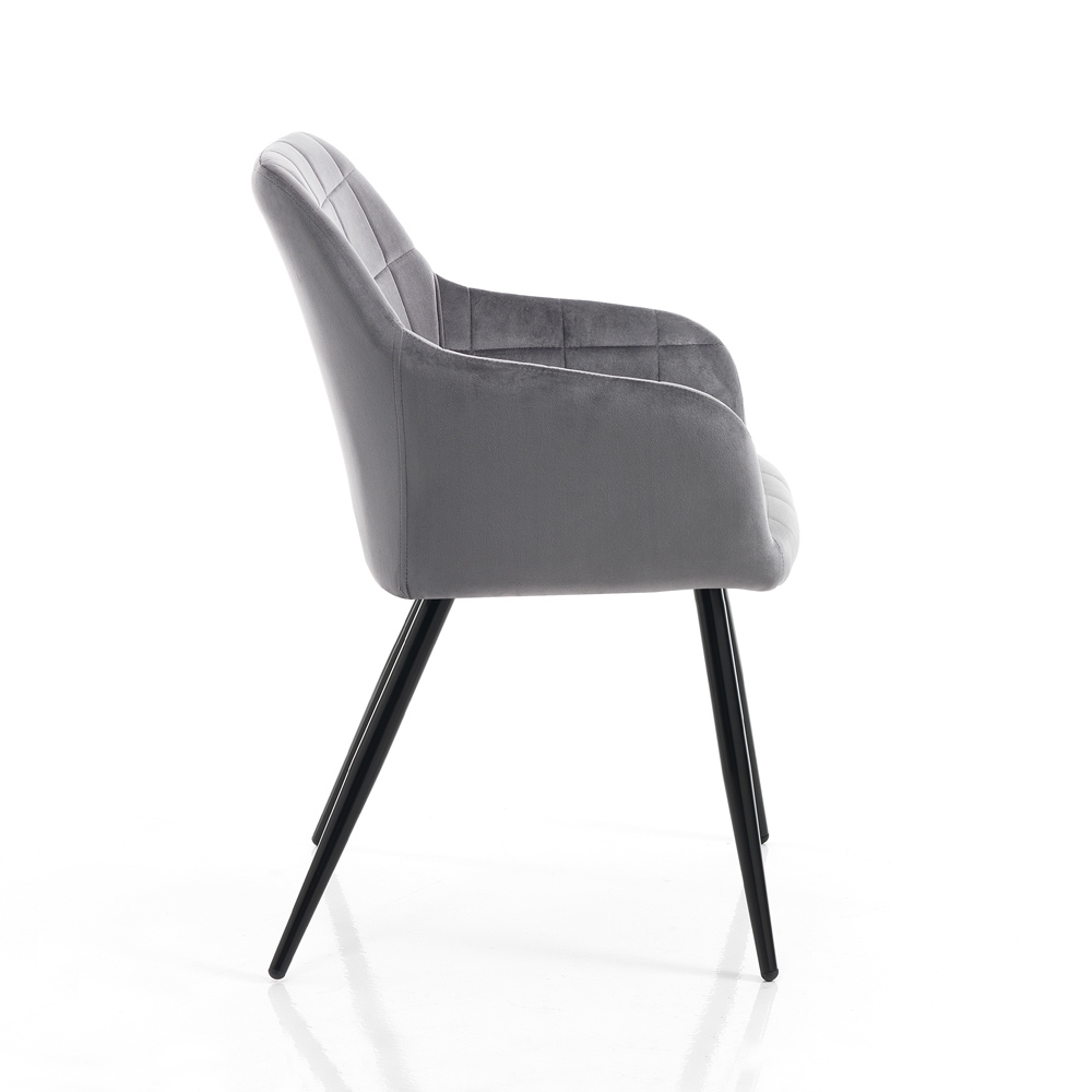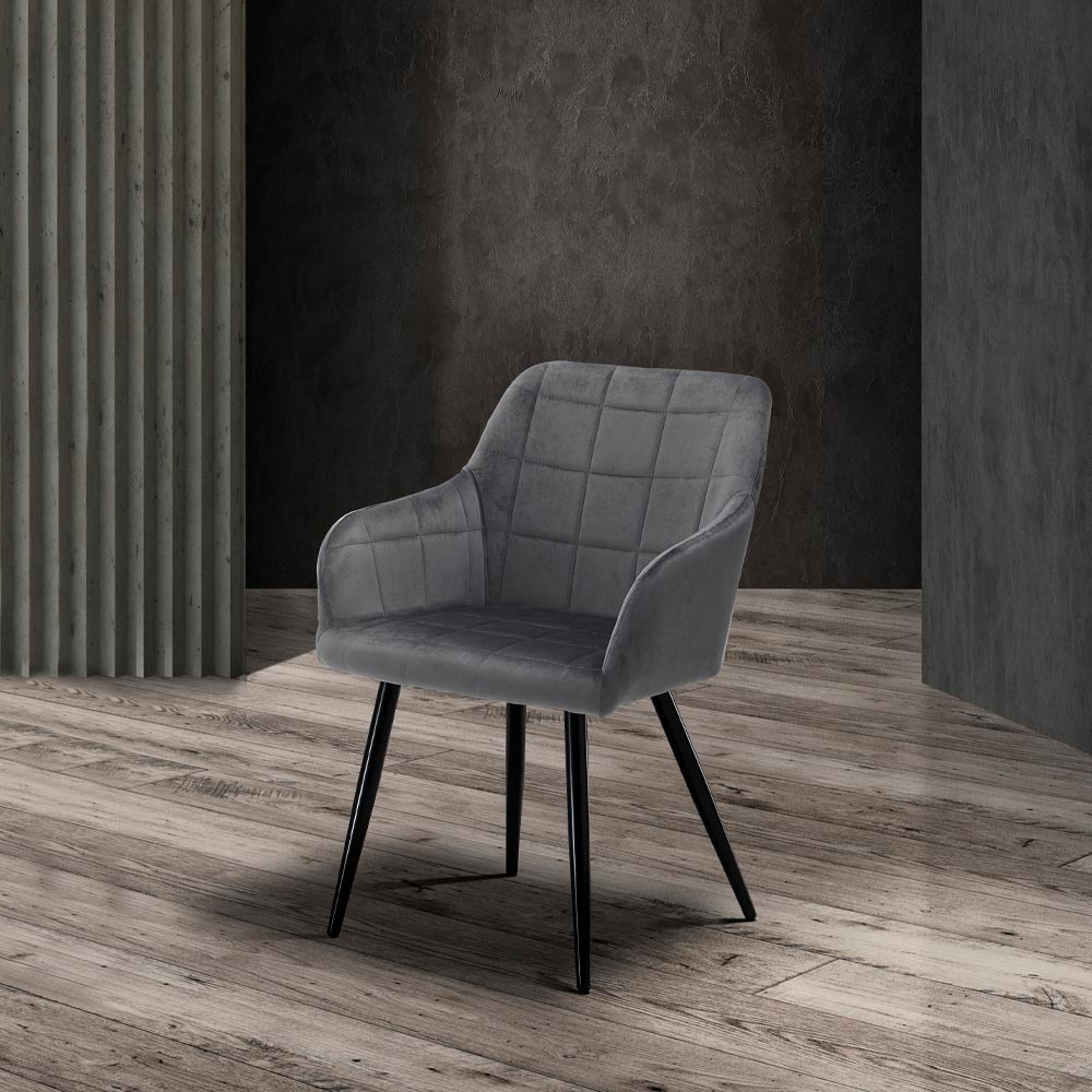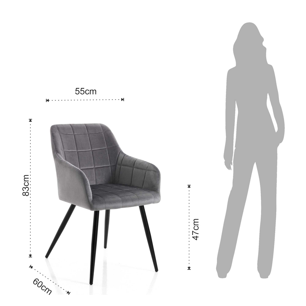 Set mit 2 Stühlen, hergestellt ausSitzfläche mit weichem, nicht abnehmbarem grauem Stoff mit Samteffekt bezogenund Struktur komplett aus mattschwarz lackiertem Metall. Diese Artikel eignen sich dank ihrer schlichten und eleganten Verarbeitung perfekt zur Vervollständigung der Einrichtung jedes Wohnzimmers, jeder Küche und jedes Wohnzimmers. Sie bieten einen bequemen und bequemen Sitz und große Stabilität durch die Form der Beine. Die verwendeten Materialien sind von ausgezeichneter Qualität, um dem Kunden ein Produkt zu bieten, das nicht nur schön anzusehen, sondern auch praktisch und funktional ist.