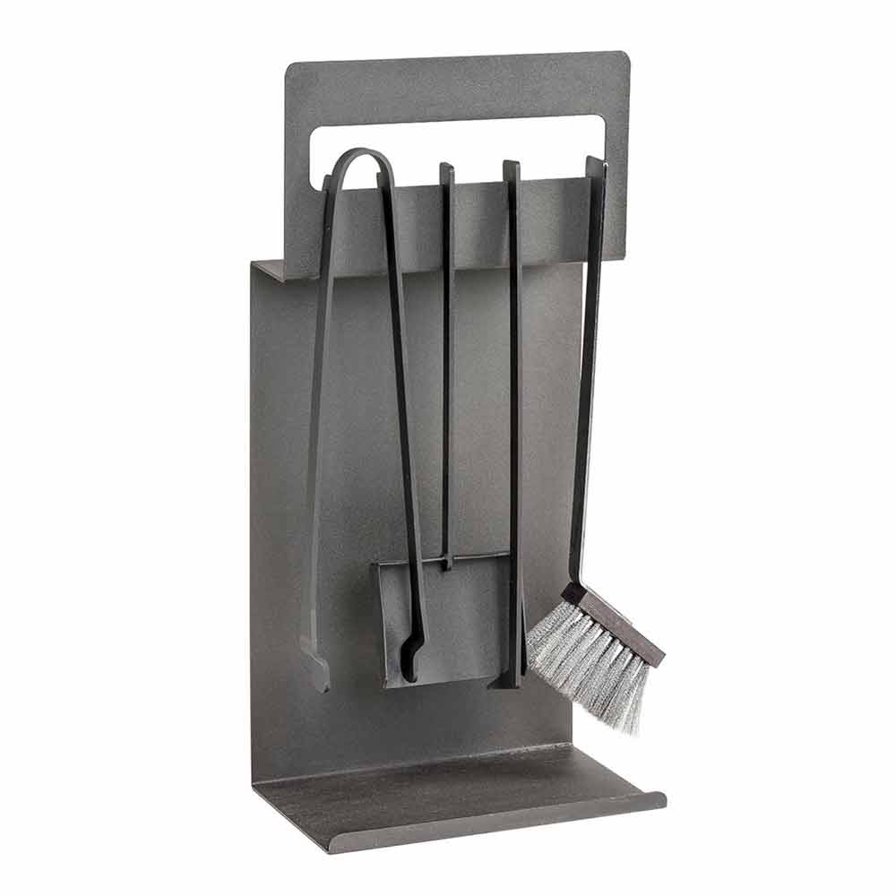 Der Rachel- Werkzeughalter für den Kamin ist eine unverzichtbare Ergänzung neben dem Holzhalter, da er mit vier verschiedenen Werkzeugtypen ausgestattet ist, die zur Wartung des Feuers und zur Reinigung des Kamins nützlich sind.