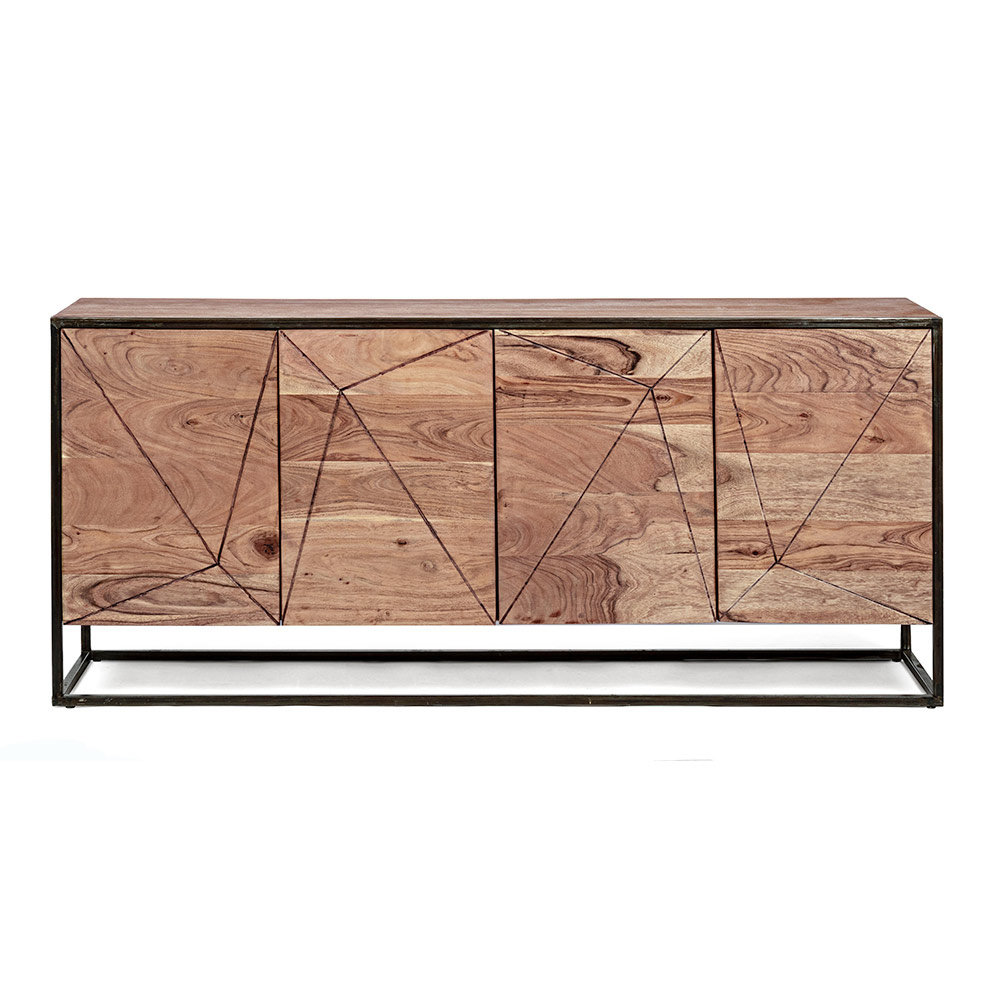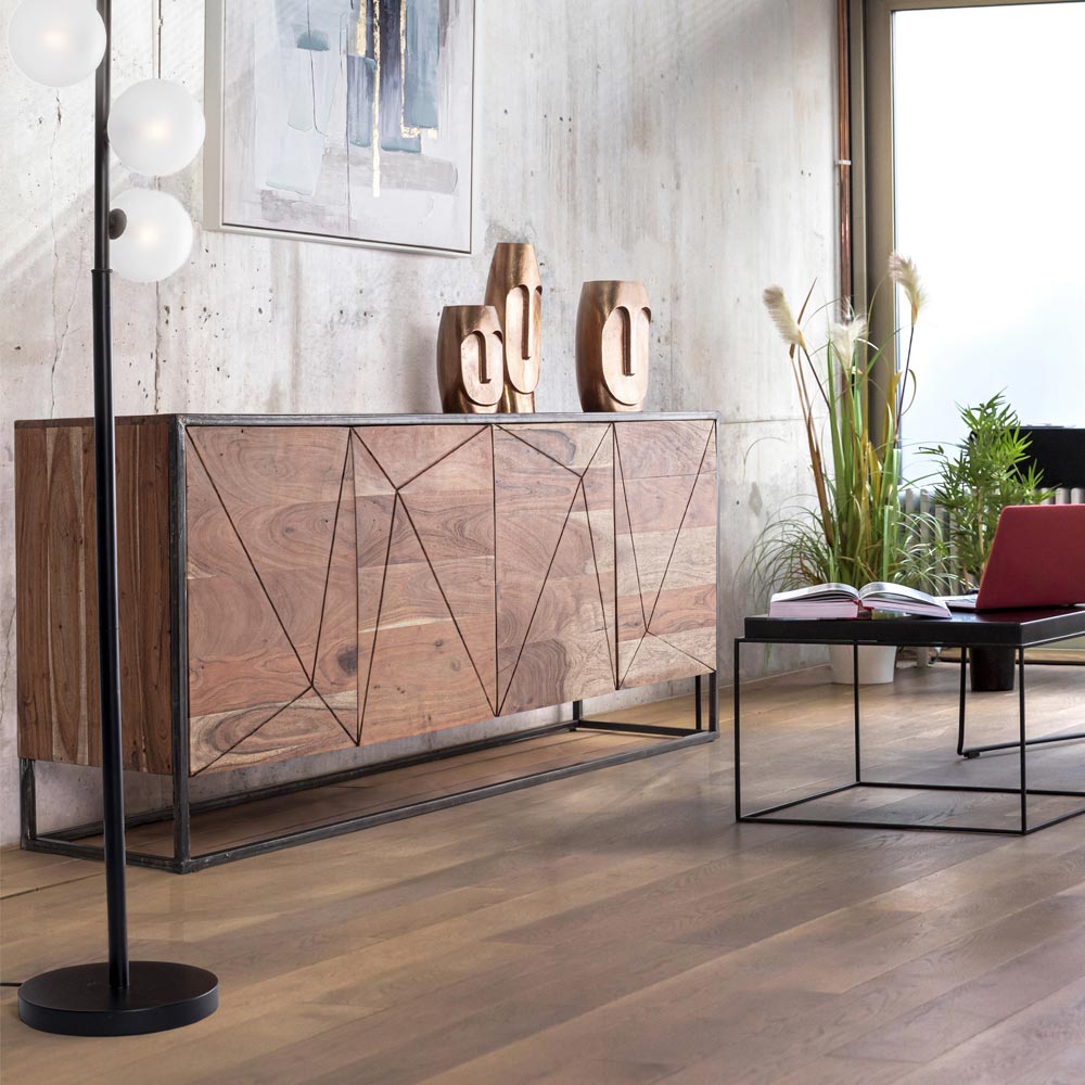 Sideboard aus Akazienholz und Stahl im Ethno-Stil, 2 Größen.