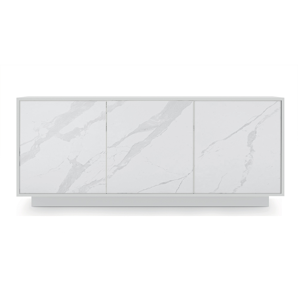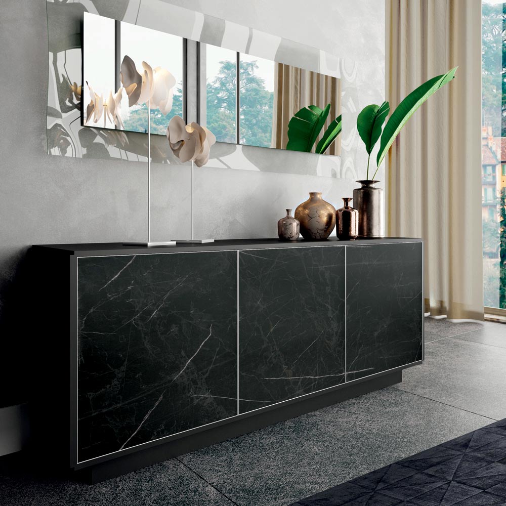 Sideboard aus lackiertem Holz mit Türen aus HPL-Laminat in Marmoroptik, hergestellt in Italien.