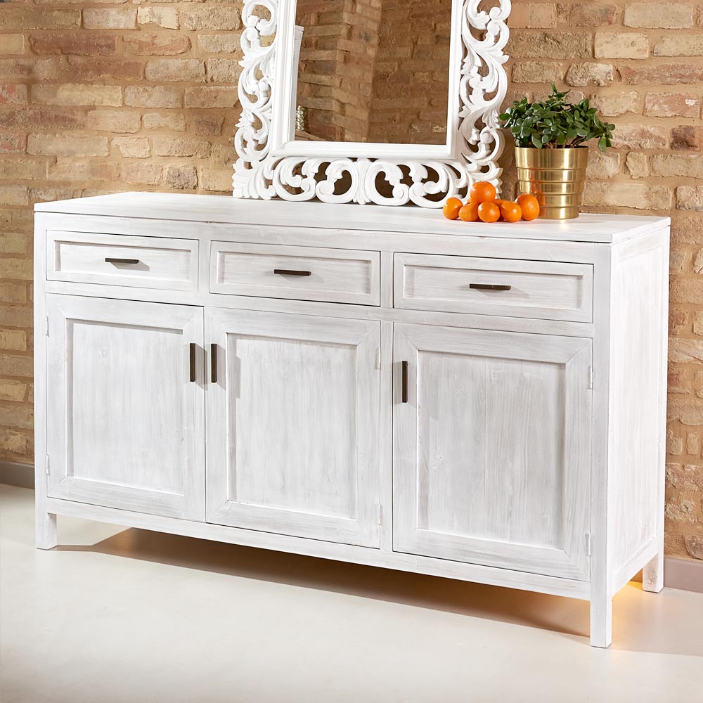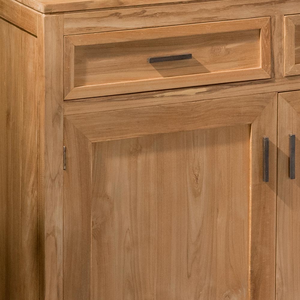 Dieses Sideboard aus massivem Teakholz ist ein zeitloses und authentisches Möbelstück, ideal zur Verschönerung von Räumen wie Küche, Esszimmer oder Wohnzimmer. Die natürliche Holzmaserung und die handwerkliche Verarbeitung verleihen ihm Wärme und Eleganz und machen jedes Stück zu einem Unikat.
