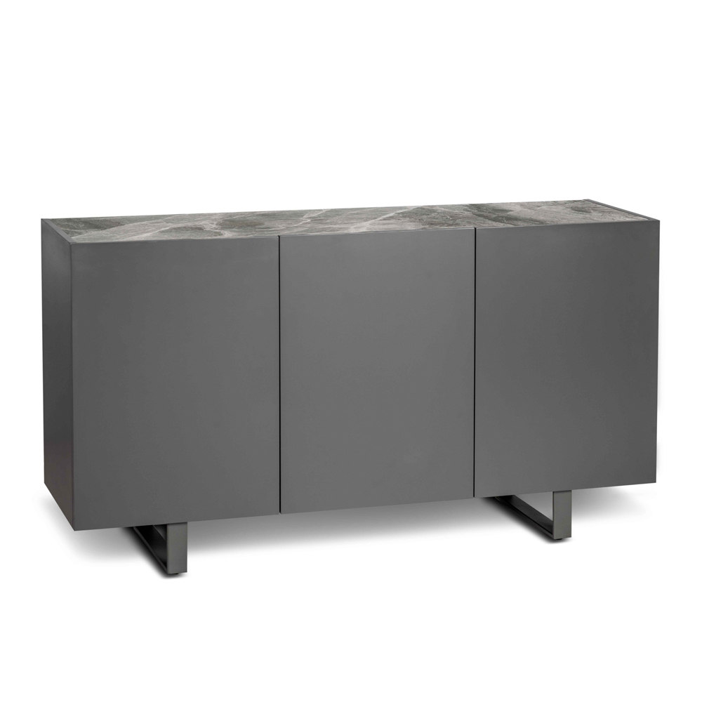 Sideboard für den Innenbereich mit grauer Keramikplatte in Marmoroptik , Struktur aus dunkelgrauem Eichenfurnier , Metallbeinen und 3 Türen mit Soft-Closing . Klassisch und anmutig zeichnen sich diese furnierten MDF-Möbel durch ihren modernen Charakter und ihre klaren Linien aus. Die Keramikplatte mit Marmoreffekt ruht auf der raffinierten und diskreten Struktur. Der Push-Pull-Mechanismus mit sanftem Schließen macht diesen Artikel kompatibel mit modernen Häusern, die Wert auf Funktionalität legen, ohne auf einen Hauch von Klasse zu verzichten.