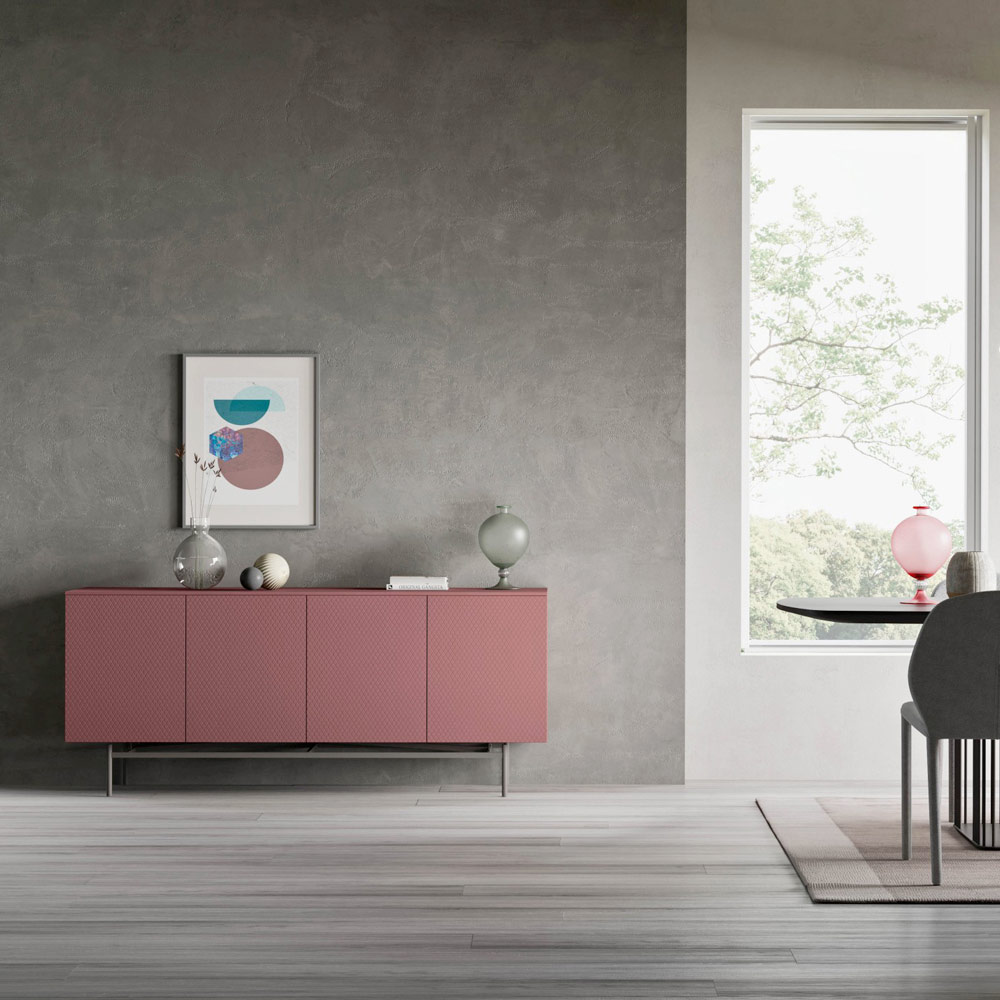 Sideboard für das Wohnzimmer hat eine Struktur aus mattem Minio-Farblack, mit