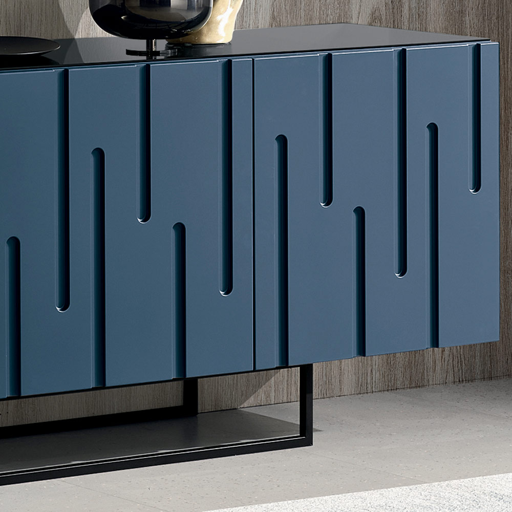 In Italien gefertigtes Designer-Sideboard mit Türen in Stalaktitenoptik und Metallgestell