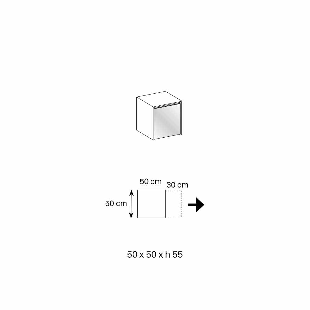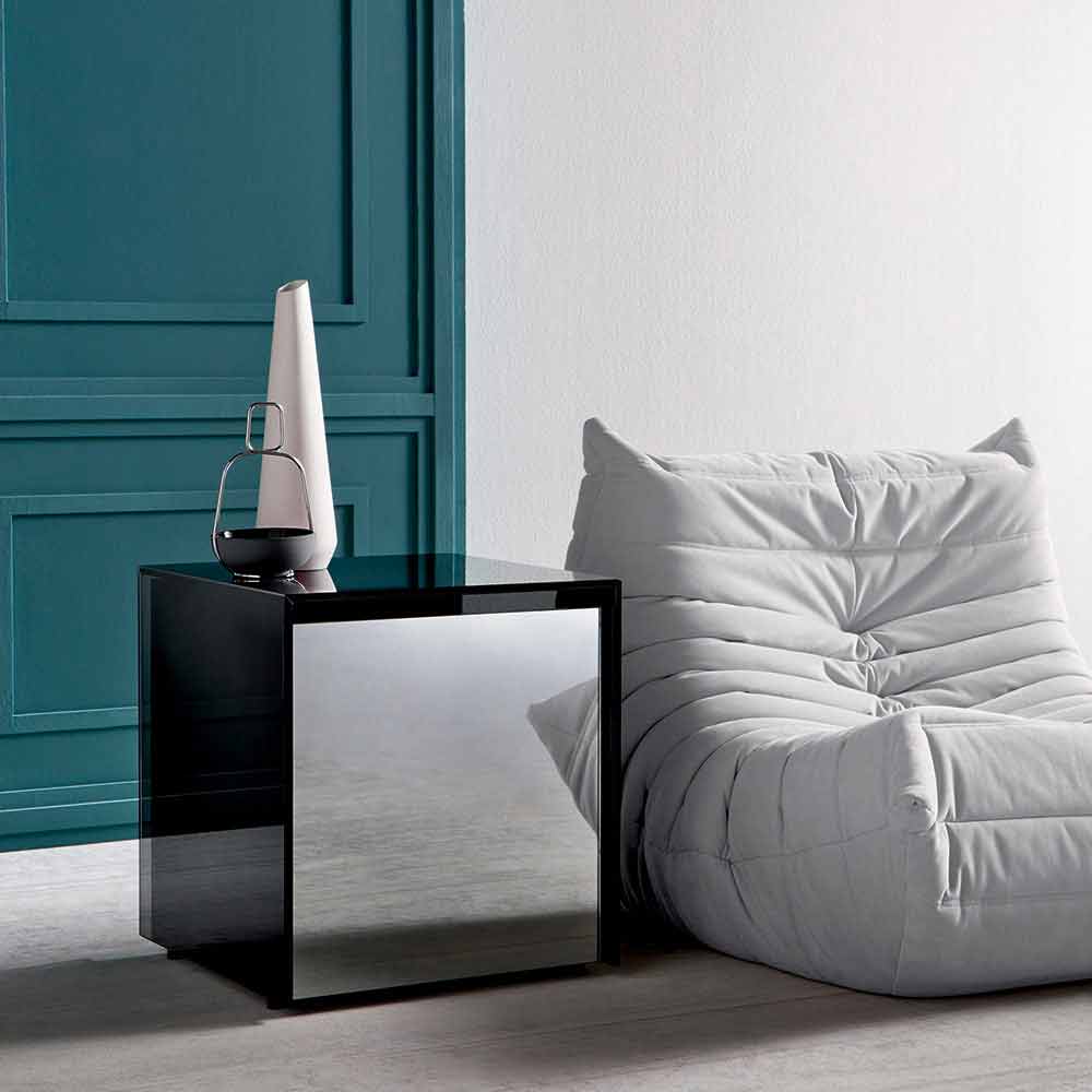 Die Besonderheit wird durch das Rauchglas gegeben, mit dem es für die äußere Struktur verwendet wird, während der "Ich sehe, ich sehe nicht"-Effekt der inneren Schublade aus schwarzem Holz eine raffinierte und elegante Konstruktion schafft.