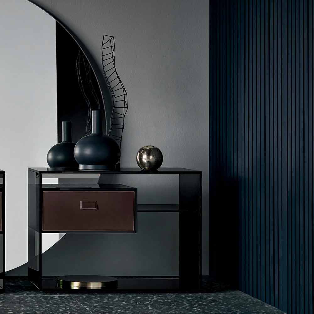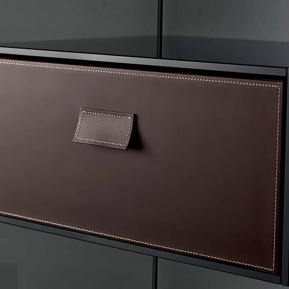 Hinweis: Die Schubladen in verschiedenen Ausführungen und die obere Ablage für die Schublade aus geätztem, verspiegeltem oder lackiertem Glas sind auf Anfrage erhältlich. Für ein kostenloses Angebot zögern Sie nicht, uns zu kontaktieren, indem Sie das Formular "Informationen anfordern" ausfüllen.