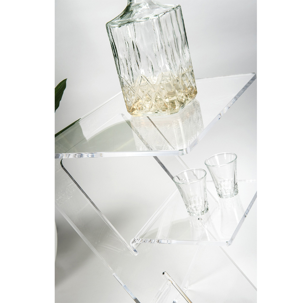 Dieser Sofa-Beistelltisch besteht vollständig aus transparentem Plexiglas, das dank seiner physikalisch-technischen Eigenschaften das Produkt zu einem machtsowohl für den Innen- als auch für den Außenbereich geeignet. Sein dezentes und geradliniges Design verfügt über eine doppelte Ablage für mehr Funktionalität und unterstreicht die Helligkeit und Brillanz , die im Laufe der Zeit konstant und unverändert bleiben.