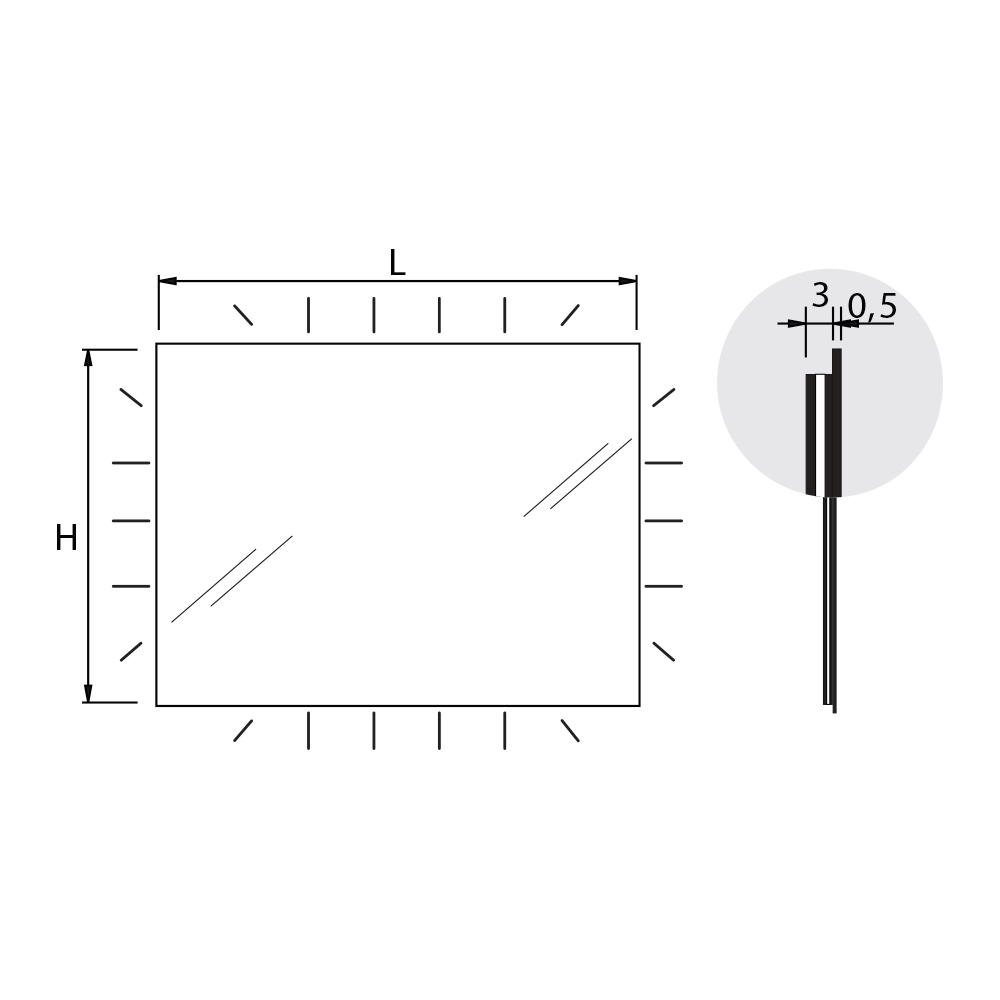 • Länge: 90 cm x Tiefe: 3 cm x Höhe: 80 cm – Leistung 49 W – Lumen 4280 lm