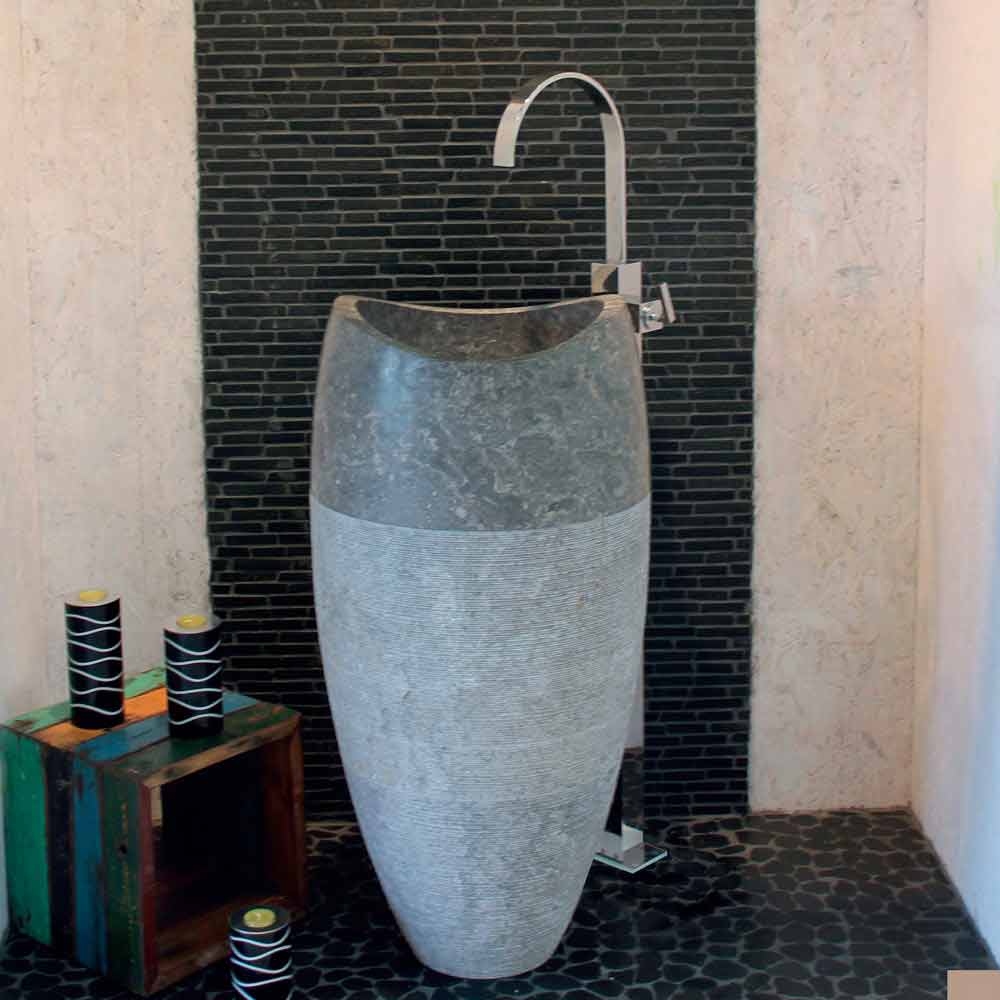 Standwaschbecken mit kegelförmigen Sockel aus Naturstein - grau- Gili Modell