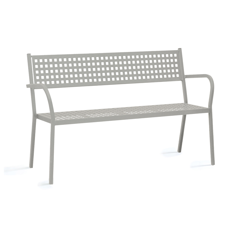 Stapelbare Außenbank mit Armlehne aus verzinktem Stahl. Hergestellt in Italien.