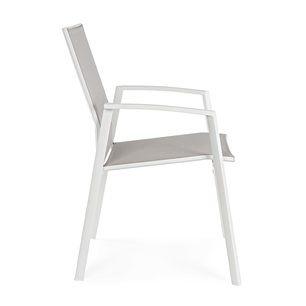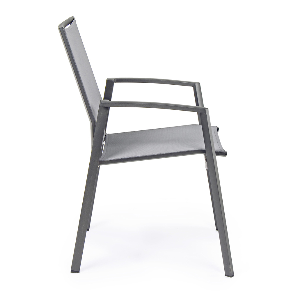 Stapelbarer Gartenstuhl aus Aluminium und Textil mit Armlehnen, 4 Stück.