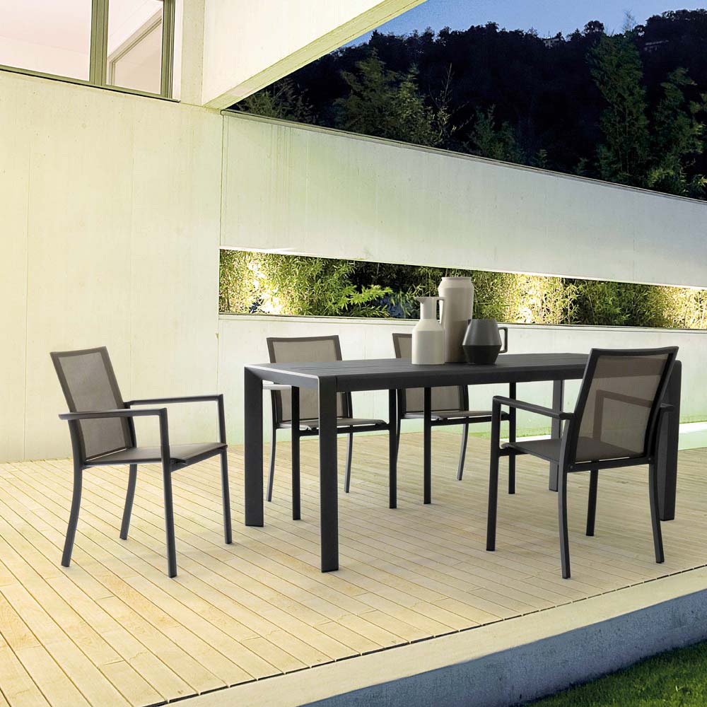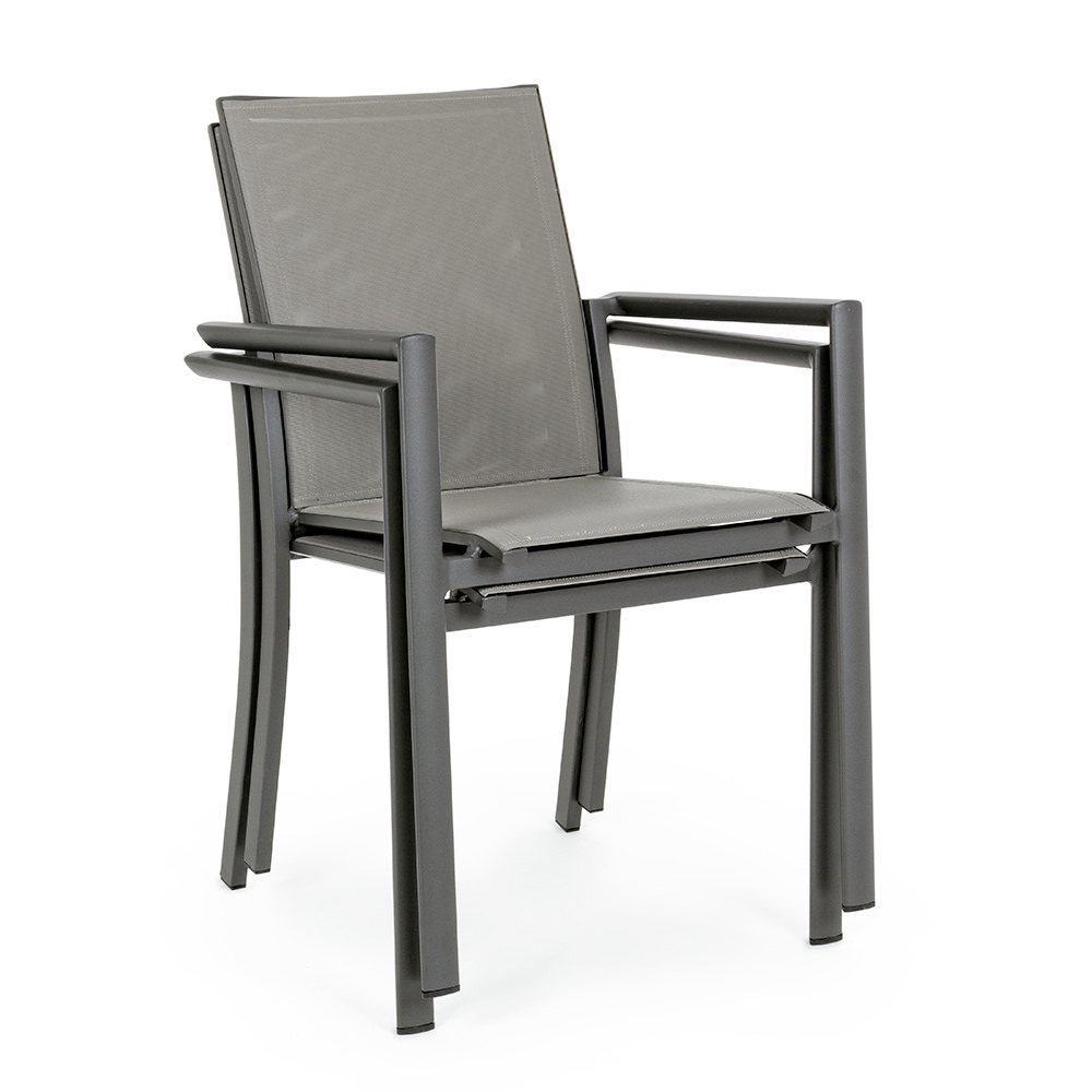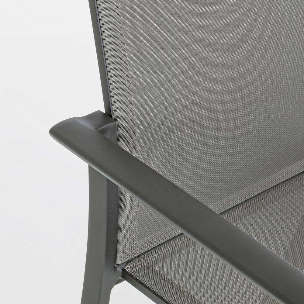 Pulverbeschichtete Aluminiumstruktur (Polyester). Sitz und Rückenlehne mit 1x1 Phifer Textilene bezogen. Stapelbar. Die Gartenmöbel müssen mit Aufmerksamkeit und Sorgfalt gedacht werden. Die Wahl muss auf Qualitätselemente fallen, die Haltbarkeit und Funktionalität gewährleisten, aber gleichzeitig unvergleichlichen Komfort und Wohlbefinden bieten, um die Natur besser genießen zu können. Wenn diese Aspekte mit einem raffinierten und innovativen Design kombiniert werden, wie es für diesen Artikel charakteristisch ist, wird ein einzigartiges Ergebnis erzielt.
