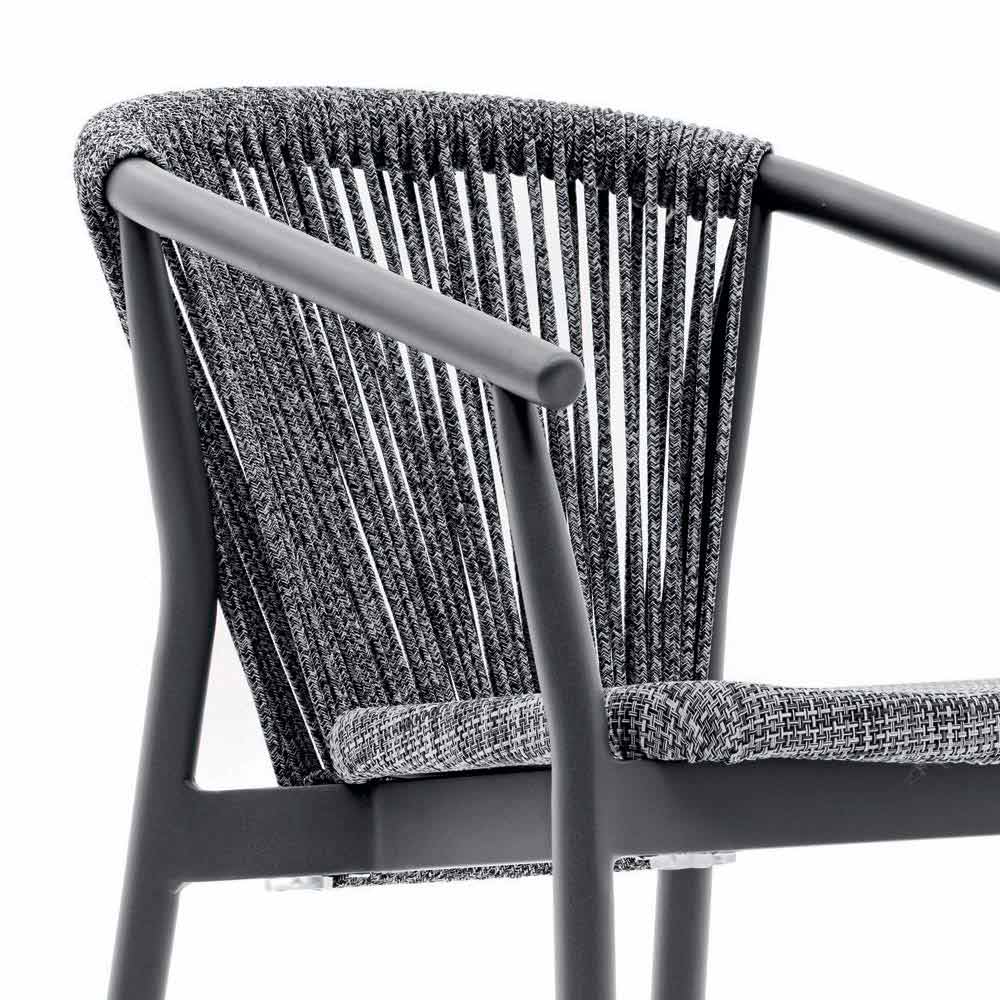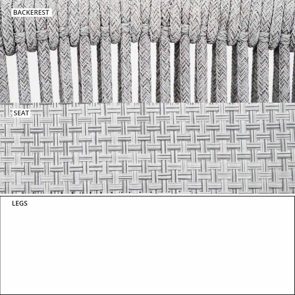 Smart wurde mit einer schlanken, lackierten Aluminiumstruktur , einem Sitz aus technischem VAR # TEX- Gewebe (technisches PVC-Gewebe) und einem Rücken aus synthetischem VAR # TEX-Kabel (technisches PVC-Gewebe) hergestellt.