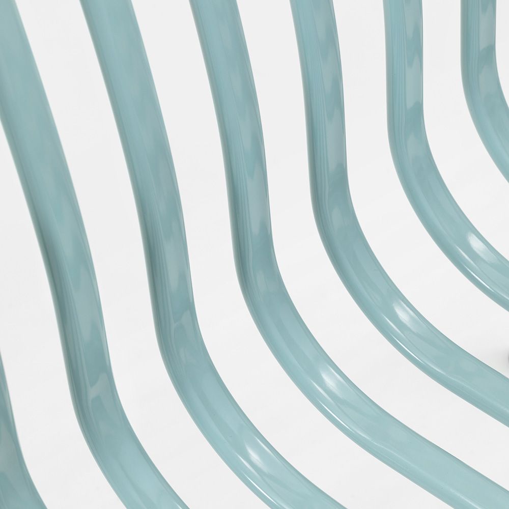 Drahtgewebe mit vertikalen ovalen Formen, die harmonisch und geschwungen den ergonomischen Formen der Struktur folgen und sich am besten an die Silhouette des Körpers anpassen, um