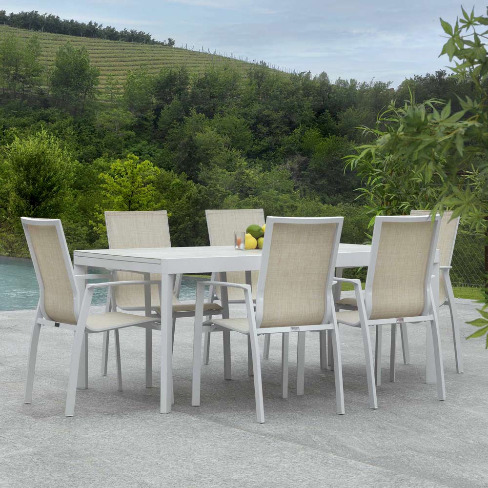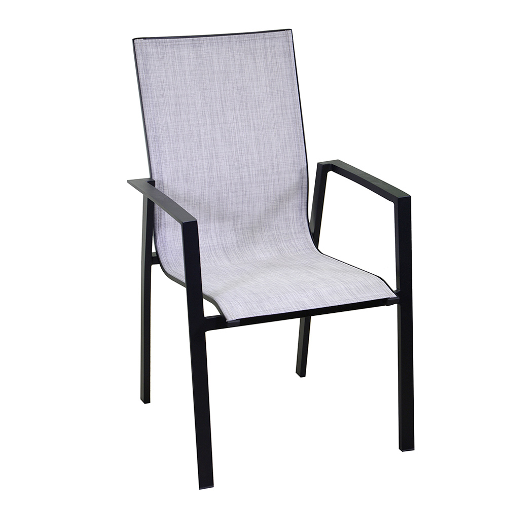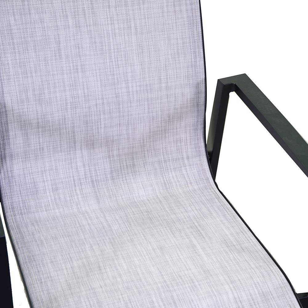 Der Aluminiumrahmen wurde aufgrund seiner Langlebigkeit und Witterungsbeständigkeit ausgewählt, um sicherzustellen, dass der Sessel sein tadelloses Aussehen Saison für Saison beibehält. Die Textilene-Polsterung verleiht ihm einen Hauch von Eleganz und ist zudem unglaublich pflegeleicht.