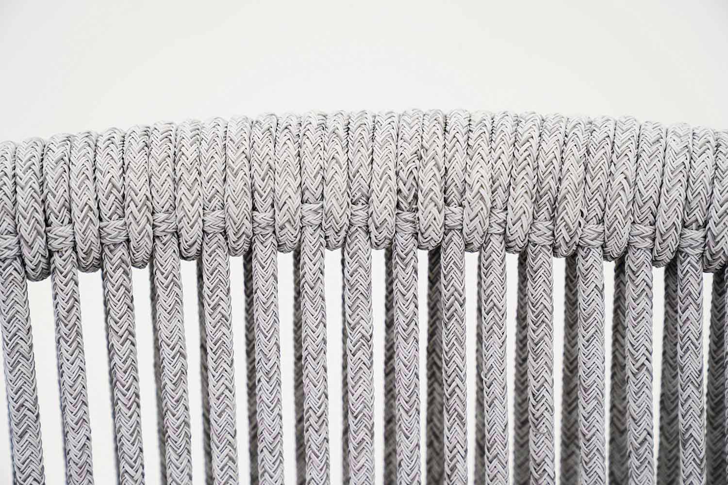 Das Design des Smart Stuhls basiert auf der perfekten Balance zwischen der Hüllkurve, die die Rückenlehne umreißt, und der dynamischen Vertikalität des Gewebes aus synthetischem VAR # TEX-Kord.