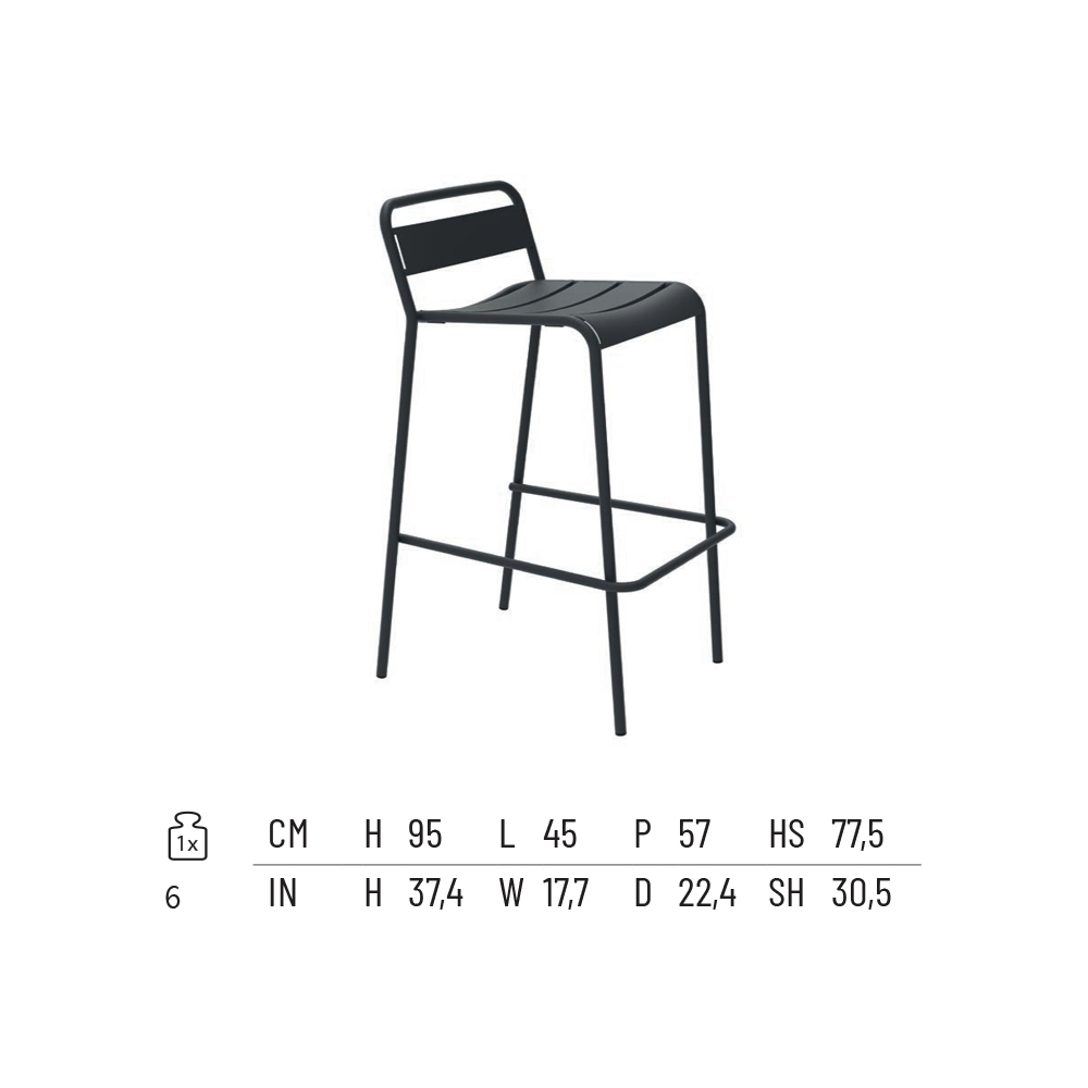Gartenhocker komplett in Italien hergestellt aus pulverbeschichtetem, verzinktem Eisen, komplett mit praktischer und bequemer Fußstütze und stapelbarer Struktur . Ein Einrichtungsaccessoire, das sich durch Schlichtheit und Frische auszeichnet, Eigenschaften, die in zeitgenössischer Weise an die 60er Jahre erinnern und ein originelles und besonders vielseitiges Ergebnis erzielen.