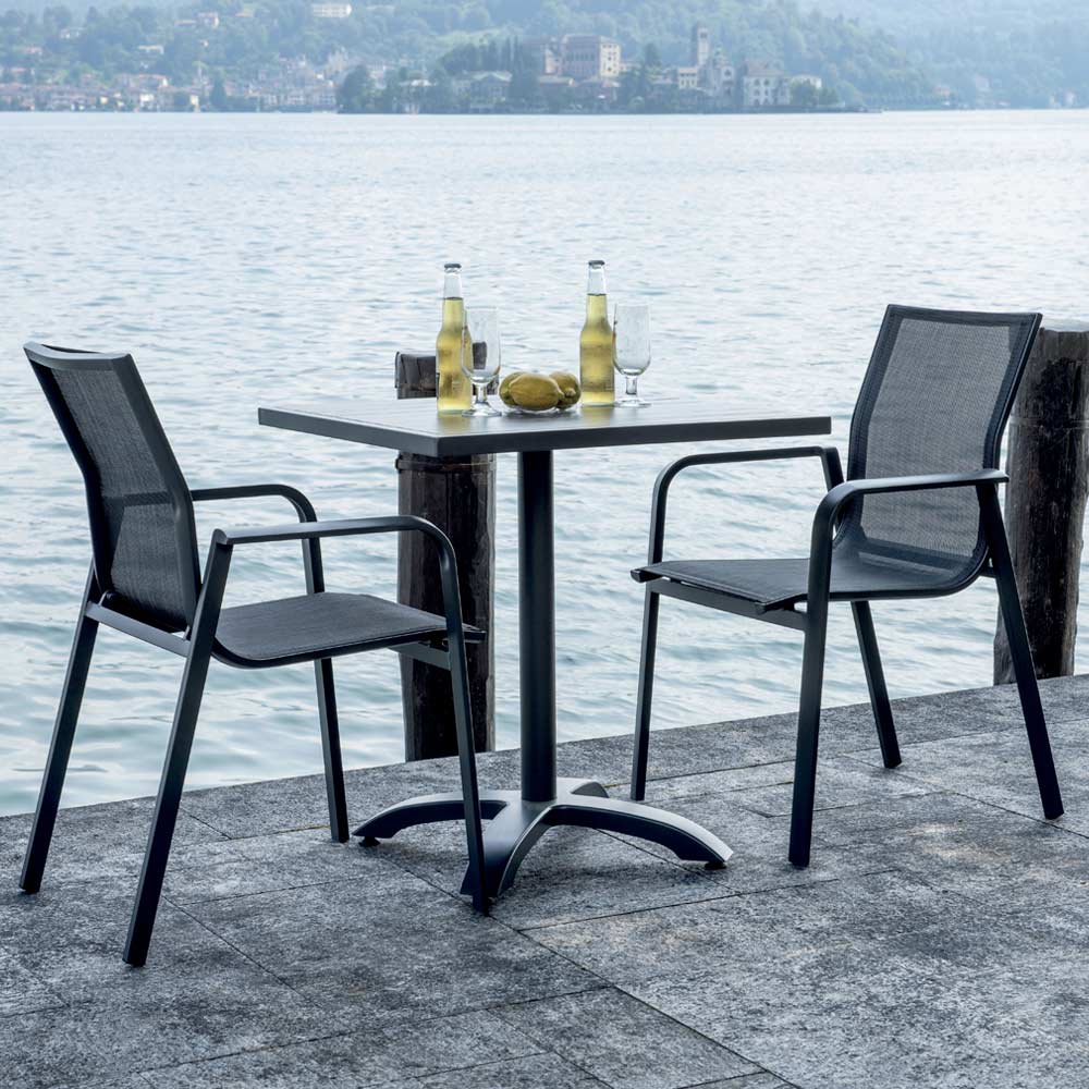 Die Textilene Sitzfläche und Rückenlehne sorgen durch ihre Atmungsaktivität und Reinigungsfreundlichkeit für ein komfortables Erlebnis. Darüber hinaus ermöglicht die stapelbare Funktion eine Platzoptimierung, was diesen Stuhl praktisch und vielseitig macht.