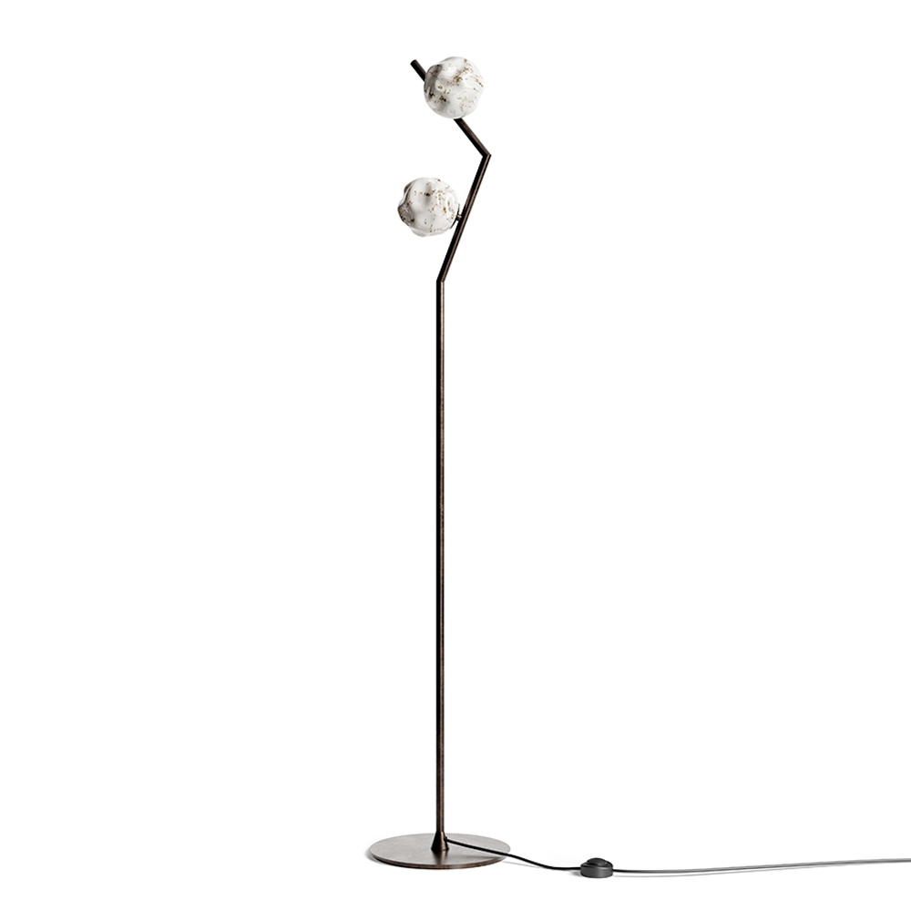 Stehleuchte mit dunkler Messingstruktur und LED-Leuchten mit Steinglasabdeckung , vollständig in Italien hergestellt. Dieses Produkt ist die perfekte Verkörperung des mediterranen Stils: warm, natürlich und materiell. Jede Kugel aus Muranoglas wurde von Glasmachermeistern von Hand gefertigt, um die Erinnerung an die raue Schönheit des Steins in Erinnerung zu rufen. Das mit Metallpulver angereicherte Glas wird jedes Mal fachmännisch geformt, um einzigartige und niemals reproduzierbare Stücke zu schaffen, und das ist der wahre Wert dieses Elements. Die dunkle Messingstruktur verleiht ihm einen rustikalen Touch, der ihn perfekt für jede Umgebung macht und ihm einen modernen und zeitlosen Look verleiht.