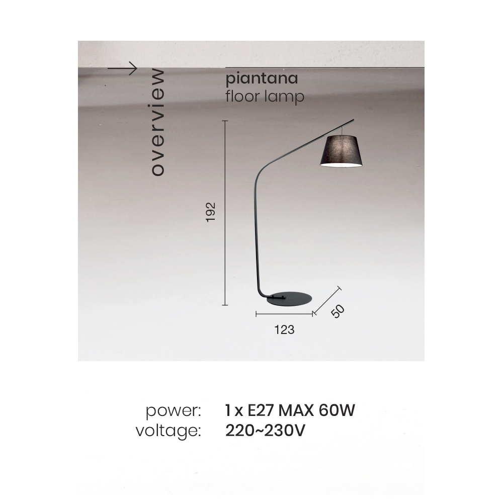 Stehlampe mit Struktur aus Metall und Lampenschirm aus PVC mit Stoff bezogen . Diese Lampe zeichnet sich durch ein einfaches und vielseitiges Design aus und ist eine ideale Lösung, um Ihren Wohnbereich durch ein hochfunktionales Produkt, das optimale Beleuchtung und einen Hauch von einzigartigem Stil bietet, nüchtern und elegant einzurichten. Ideal, um eine einladende Atmosphäre zu schaffen und Qualität und Wert zu gewährleisten, bietet diese Lampe gleichzeitig ein raffiniertes und exklusives Design und verleiht so der perfekten Wohnzimmer-Stehlampe Leben.