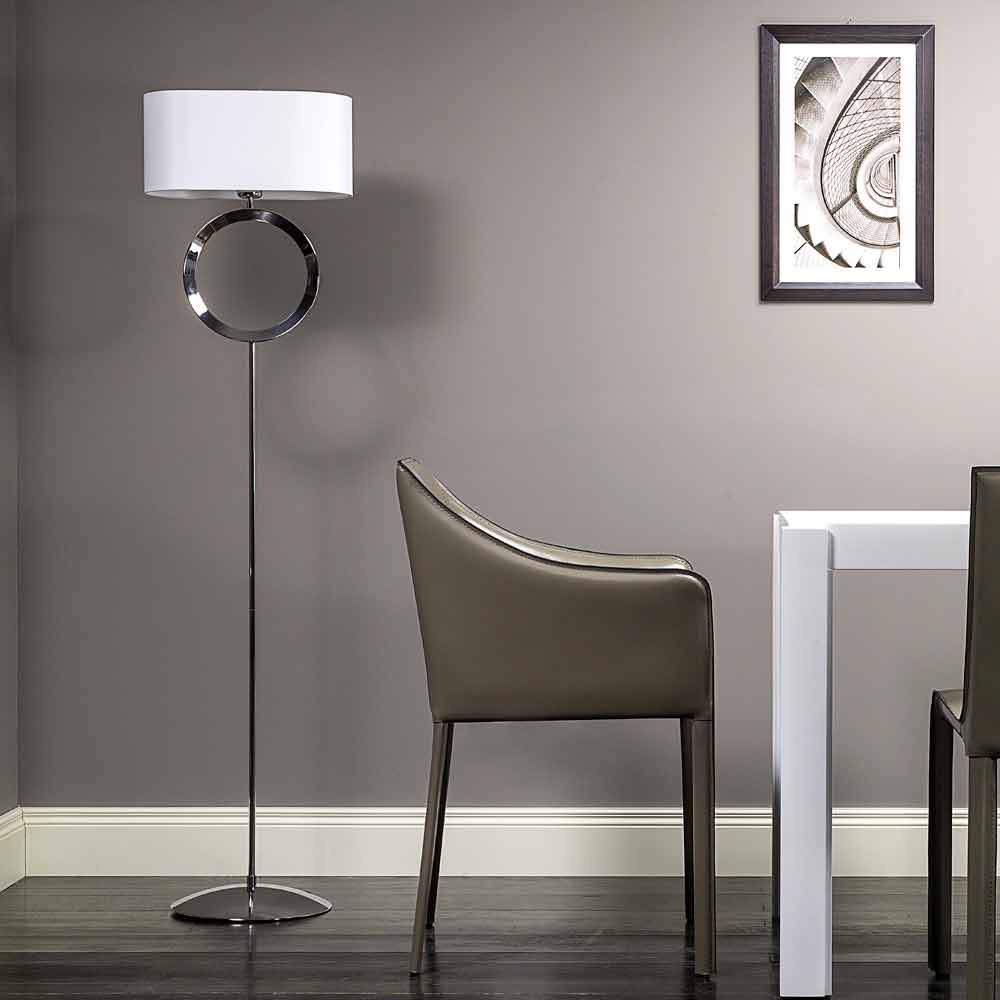 Stehlampe aus Stahl mit weißem Lampenschirm Hmax 149,5cm Moon Moon ist eine Stehlampe mit einem modernen Design. Die Struktur besteht aus Stahl, während der Lampenschirm weiß ist. Dank seines vielseitigen Designs kann es in jeder Umgebung, von zu Hause bis ins Büro, aufgestellt werden. Birne: E27 60W nicht enthalten.