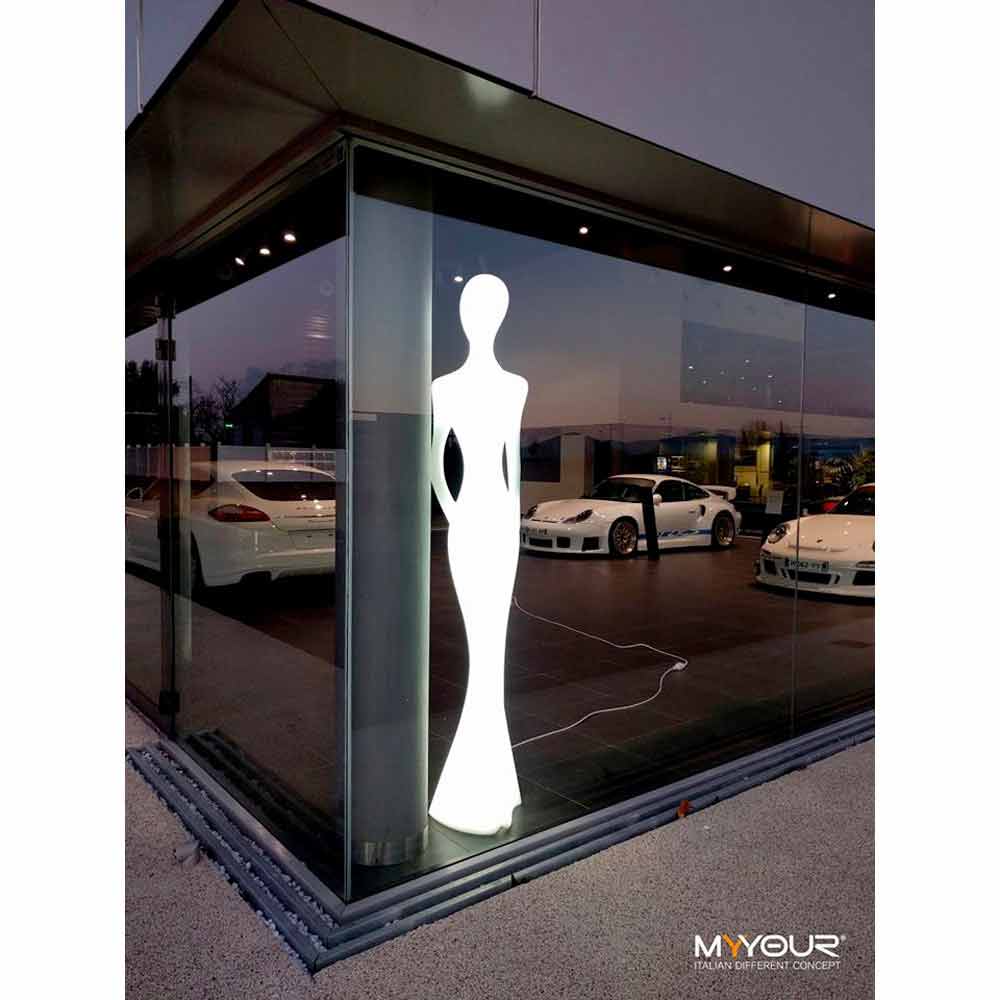 Es ist von der klassischen Welt inspiriert, bietet aber ausgesprochen innovatives Design, Technologien und funktionale Merkmale. Die neue Penelope- Lampe von Myyour überrascht: für ihre Größe (sie ist 2,10 m hoch); für das Design (stark anthropomorph, reproduziert und stilisiert es eine schlanke Figur einer Frau); für die funktionellen Eigenschaften (gleichmäßig über die gesamte Oberfläche beleuchtet, stellt es einen zweifellos wichtigen Lichtpunkt dar). Die stilistische Inspiration stammt offensichtlich von klassischen Statuen, Ornamenten von Villen und Gärten der Antike, aber sie wird durch eine Neuinterpretation verwirklicht, die ein scharfes Auge auf moderne und abgelegenere Kunst wirft (Sie können Echos jakobinischer und etruskischer Kunst sehen).