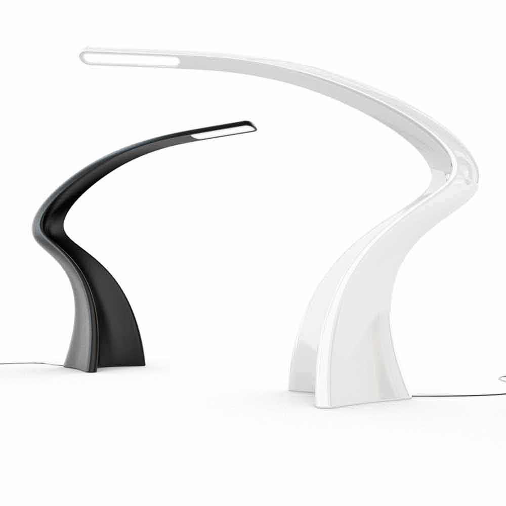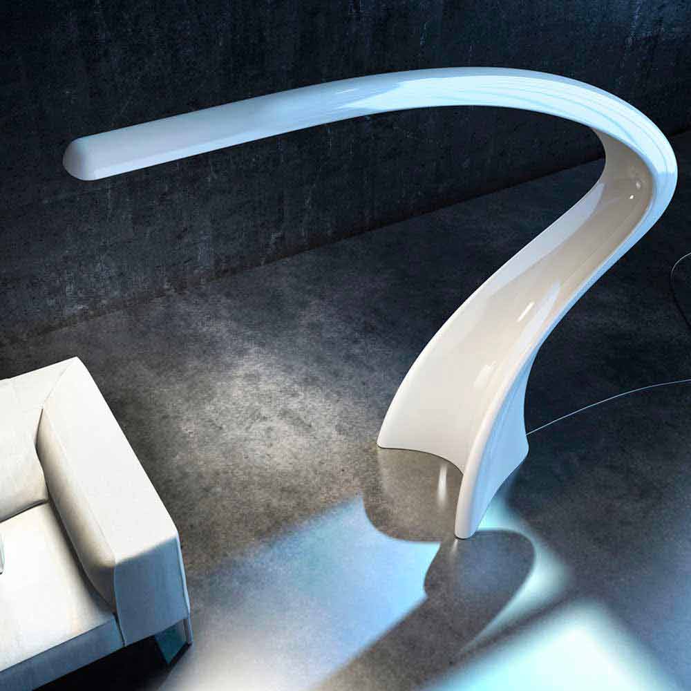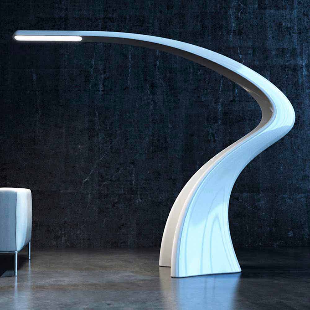 Große monolithische Stehlampe mit schlanker und fließender Form aus Solid Surface;.