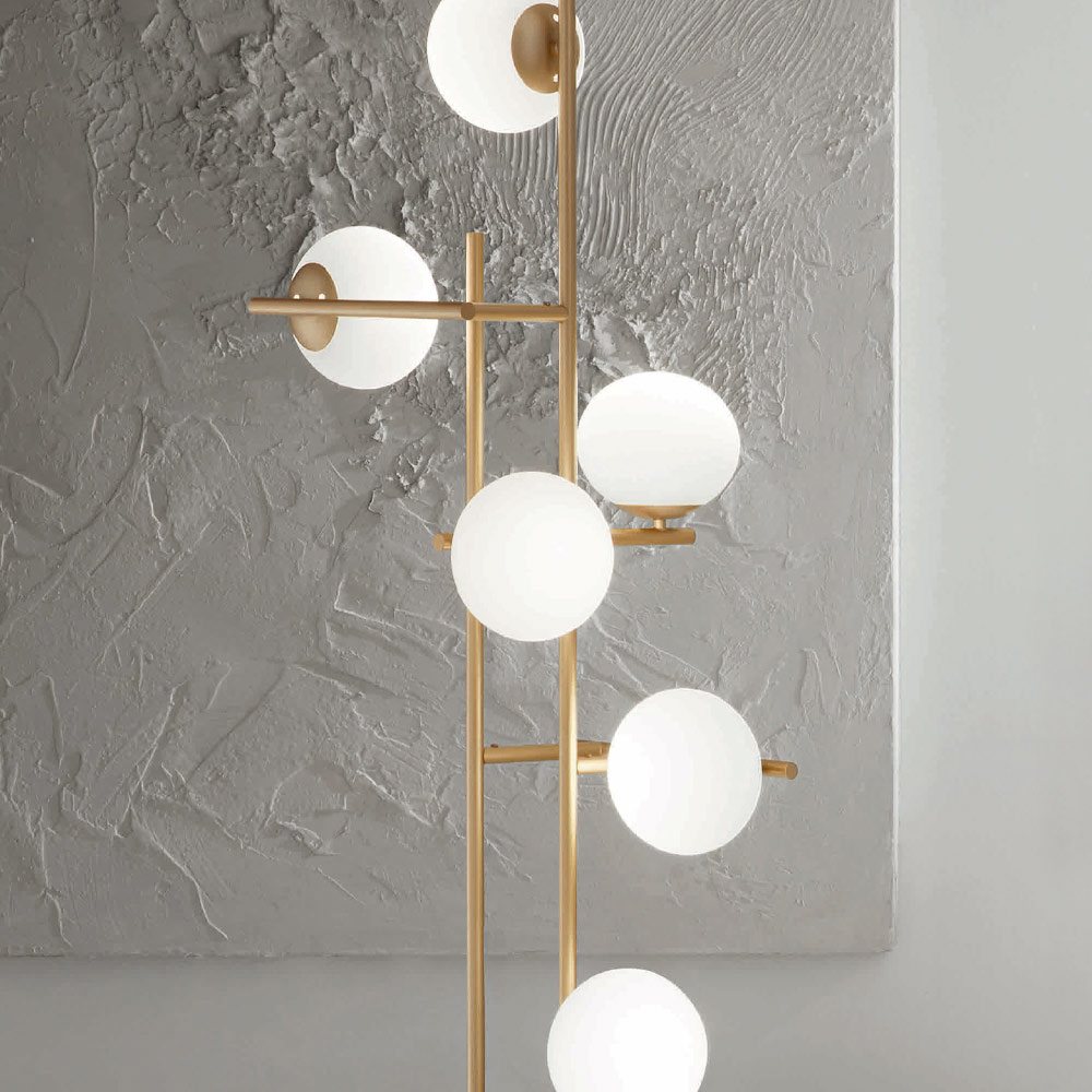 Komplett in Italien hergestellteStehleuchte aus lackiertem Metall und mundgeblasenem Glas mit Goldfinish und LED-Licht. Ziel dieses Produkts ist es, die Tradition durch einen zeitgenössischen Ansatz aufzuwerten, bei dem Stil, Klasse und Innovation zu neuen Designformeln verschmelzen, um jede Umgebung mit Geschmack und Charakter einzurichten und zu beleuchten. Stärken sind die Besonderheit der Formen , die Qualität der Materialien und die Einzigartigkeit der Lichtquelle .