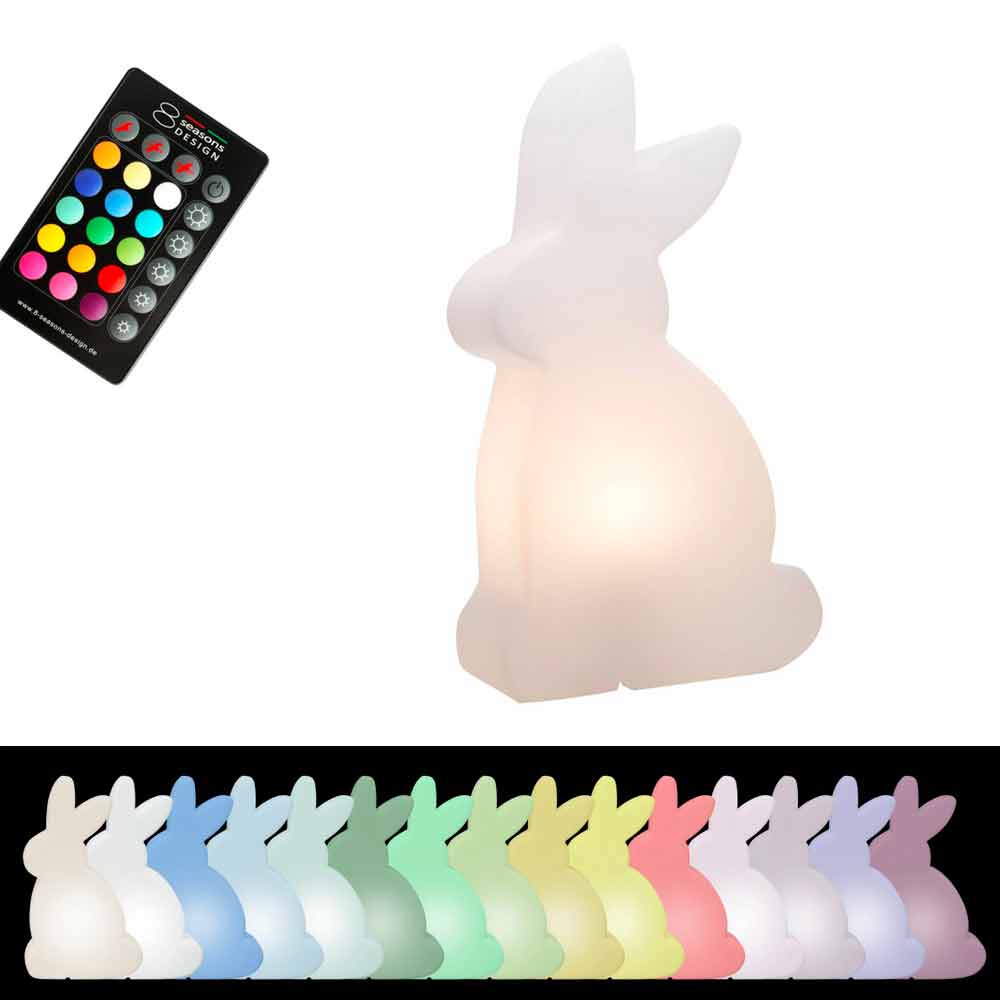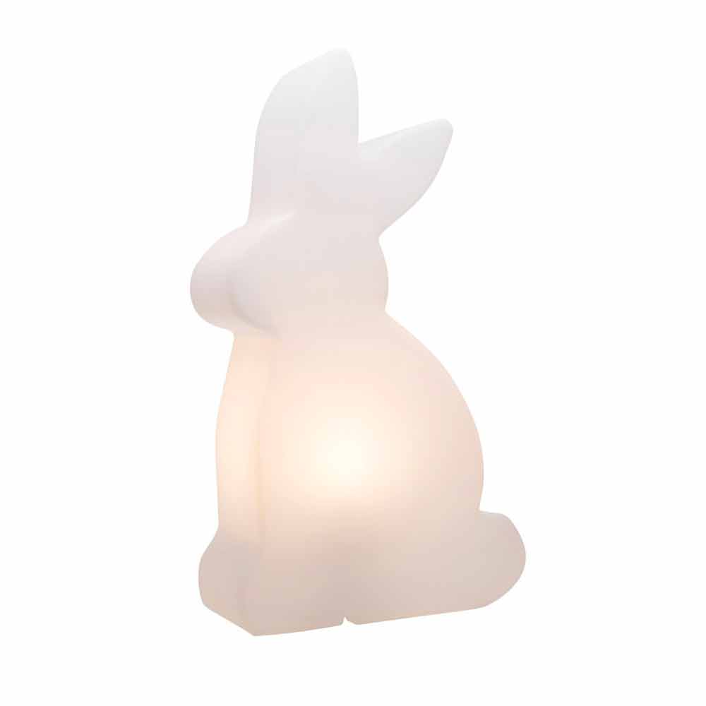 Tischlampe in Form eines weißen Kaninchens mit einer Auswahl an Aufsätzen für drinnen oder draußen.