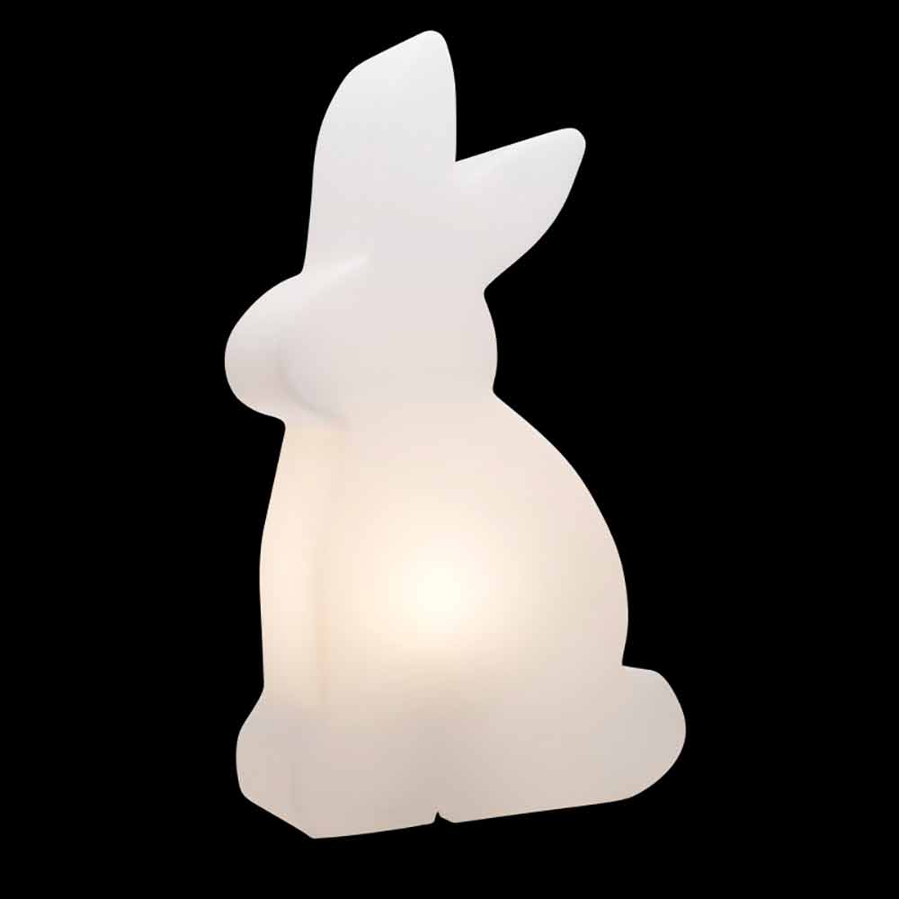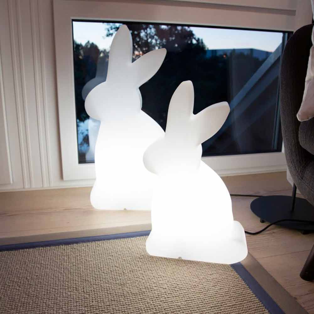 Geeignet für jede Innen- und Außenumgebung , um einen Hauch von Lebendigkeit zu verleihen: Es handelt sich um eine Steh- oder Tischlampe in Form eines Kaninchens für alle Altersgruppen.